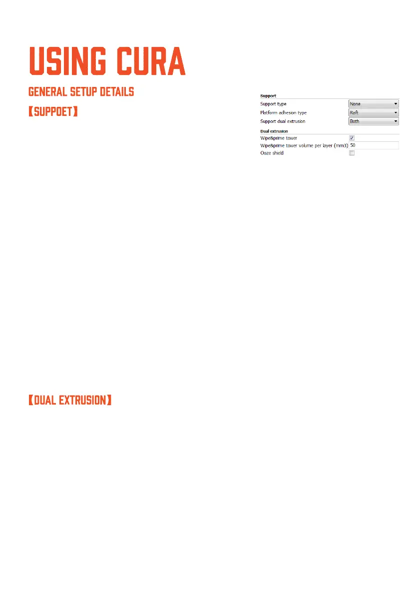 WANHAO D12 300 - CURA GENERAL SETUP DETAILS; Support and Adhesion Settings; Dual Extrusion Specifics
