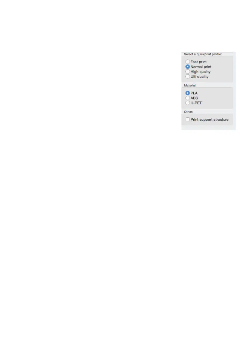 Quick Print mode allows you to quickly set the quality, material,