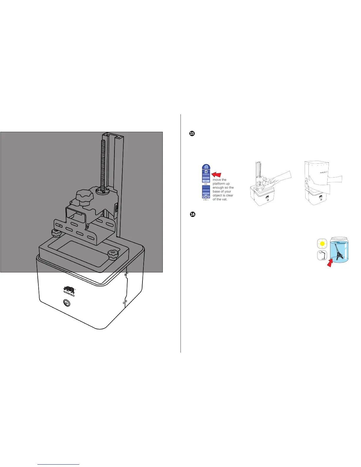 resin in the vat from light. Remove as much liquid from the platform and object as possible with the paper. Waste paper can be