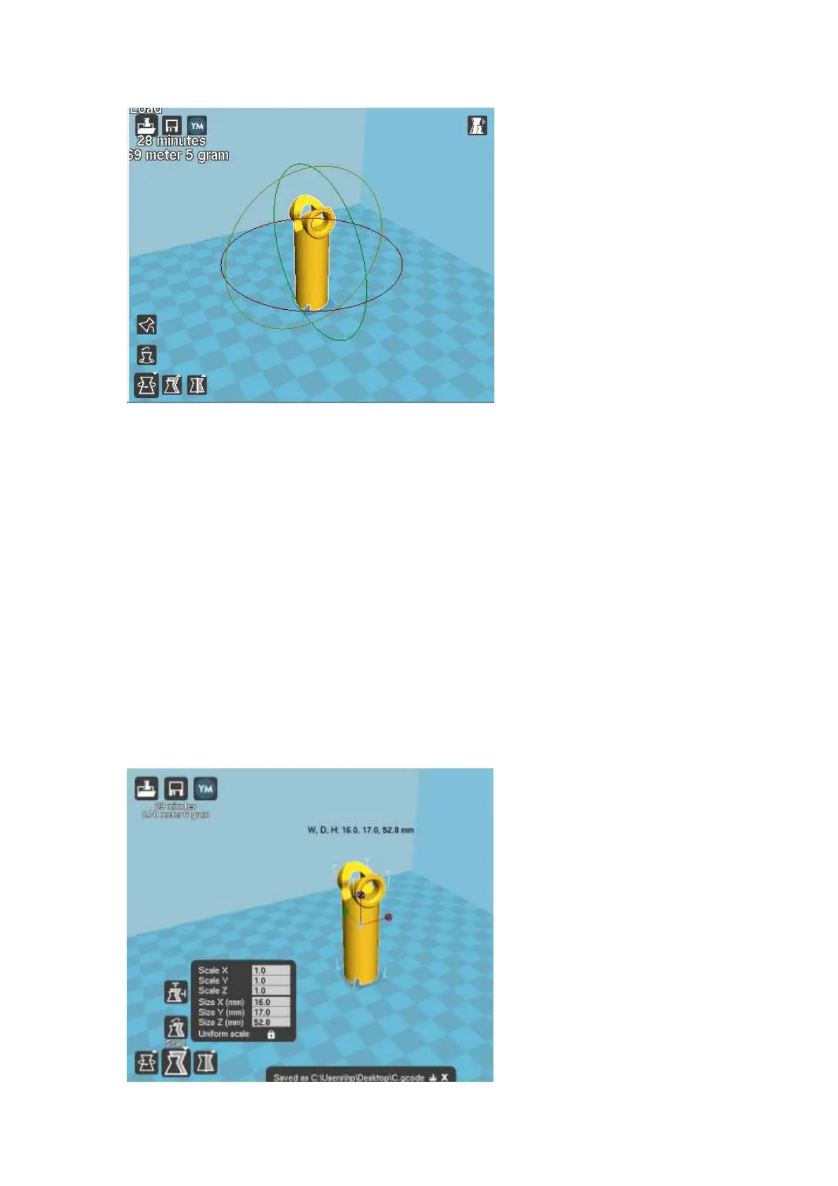 The Scale button displays the model dimensions, along with the ability to scale along the X Y or Z