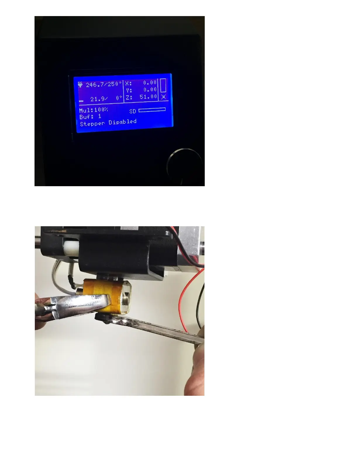 4. Remove original nozzle while supporting heater block with adjustable wrench. Be very careful,