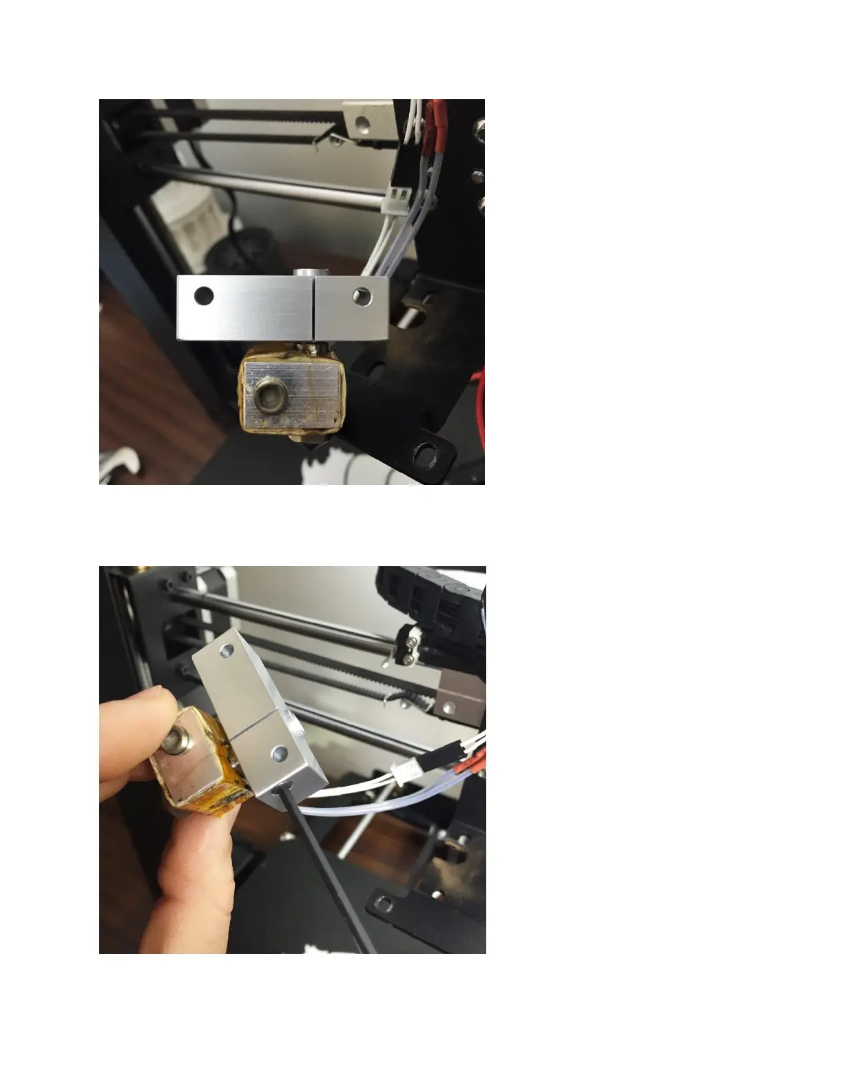 15. Install thermal tube into a cooling block. Notice the orientation of heater block with regard to