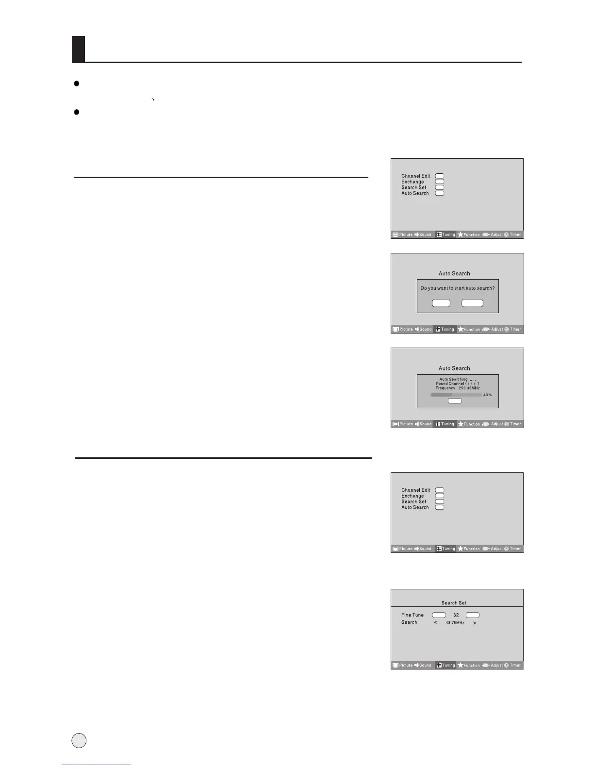 4 Press CH+/- button to select Search option, and use VOL+/-