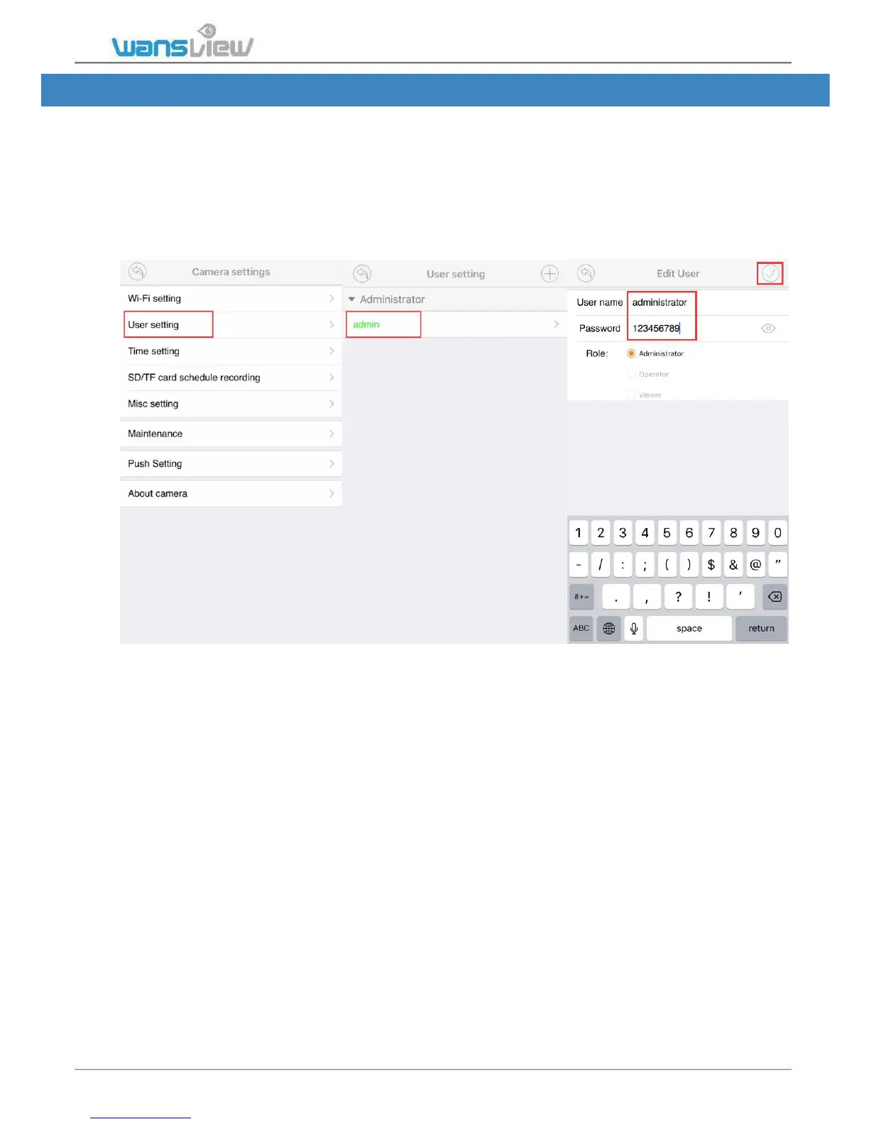 Tap User Setting, and choose Administrator>Admin, user can change the username and