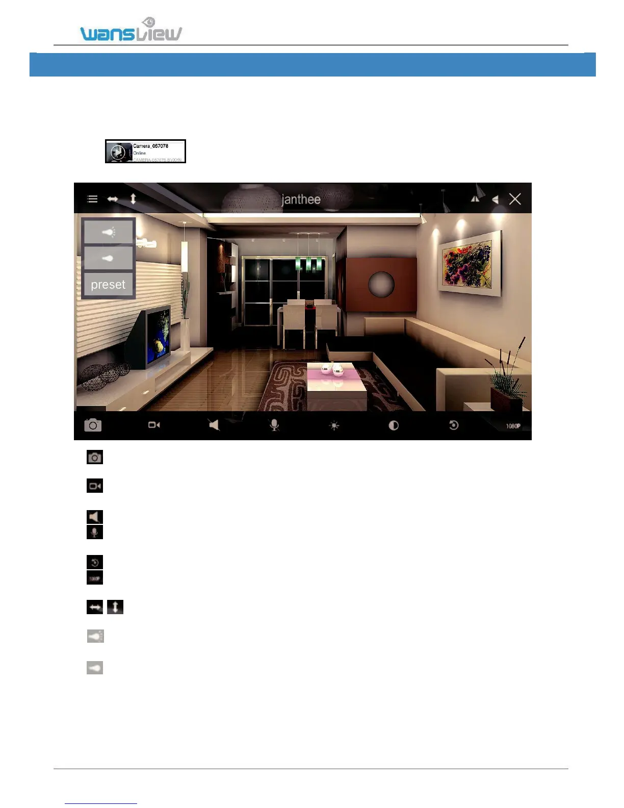 Listen: When the Listen is on, user can listen what happening on the camera end.