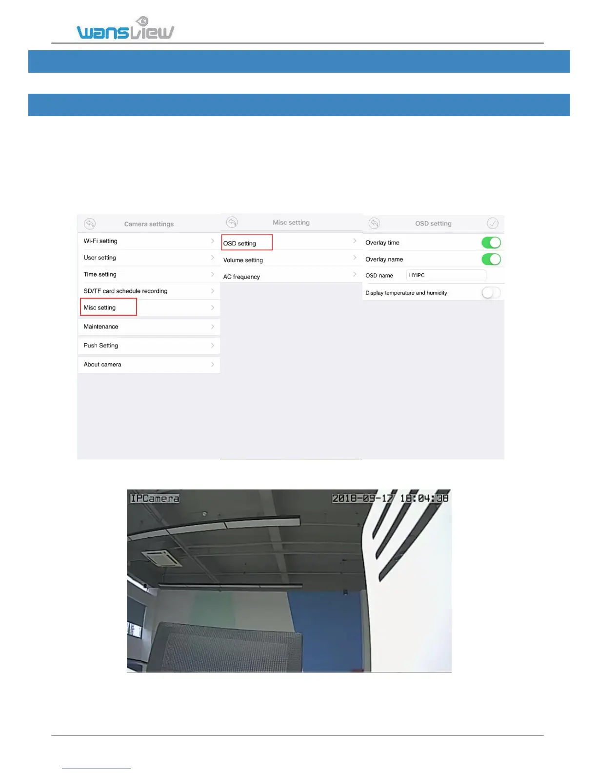 On Misc Setting, user can set up OSD (On Screen Display), Microphone/ Speaker