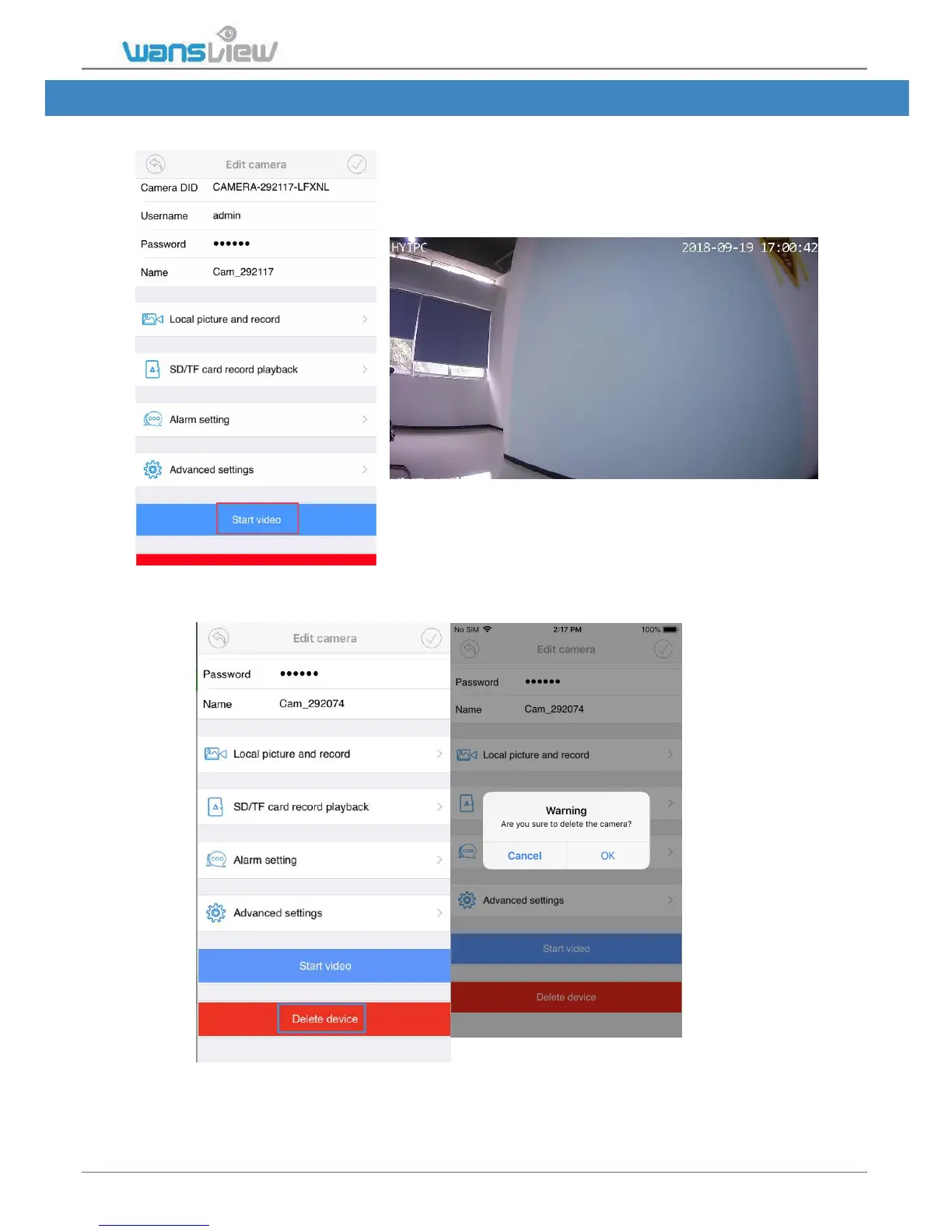Wansview K3 - Start Video; Delete Device