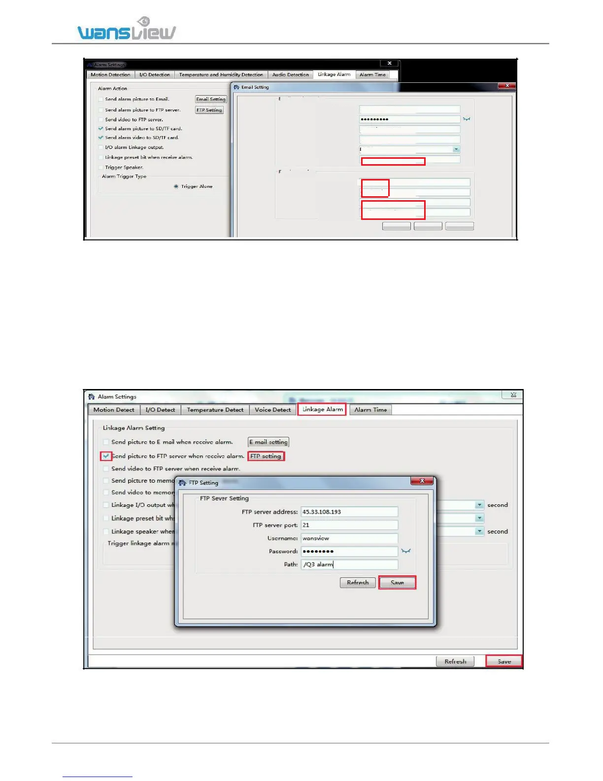 Note: If you want to save the alarm picture and video to FTP, you must build an FTP
