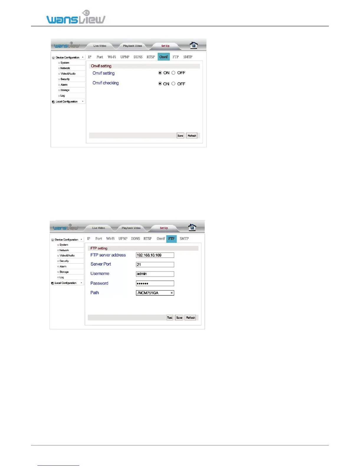 systems. Enter Onvif Setting. The user can start up and calibrate Onvif functions. The