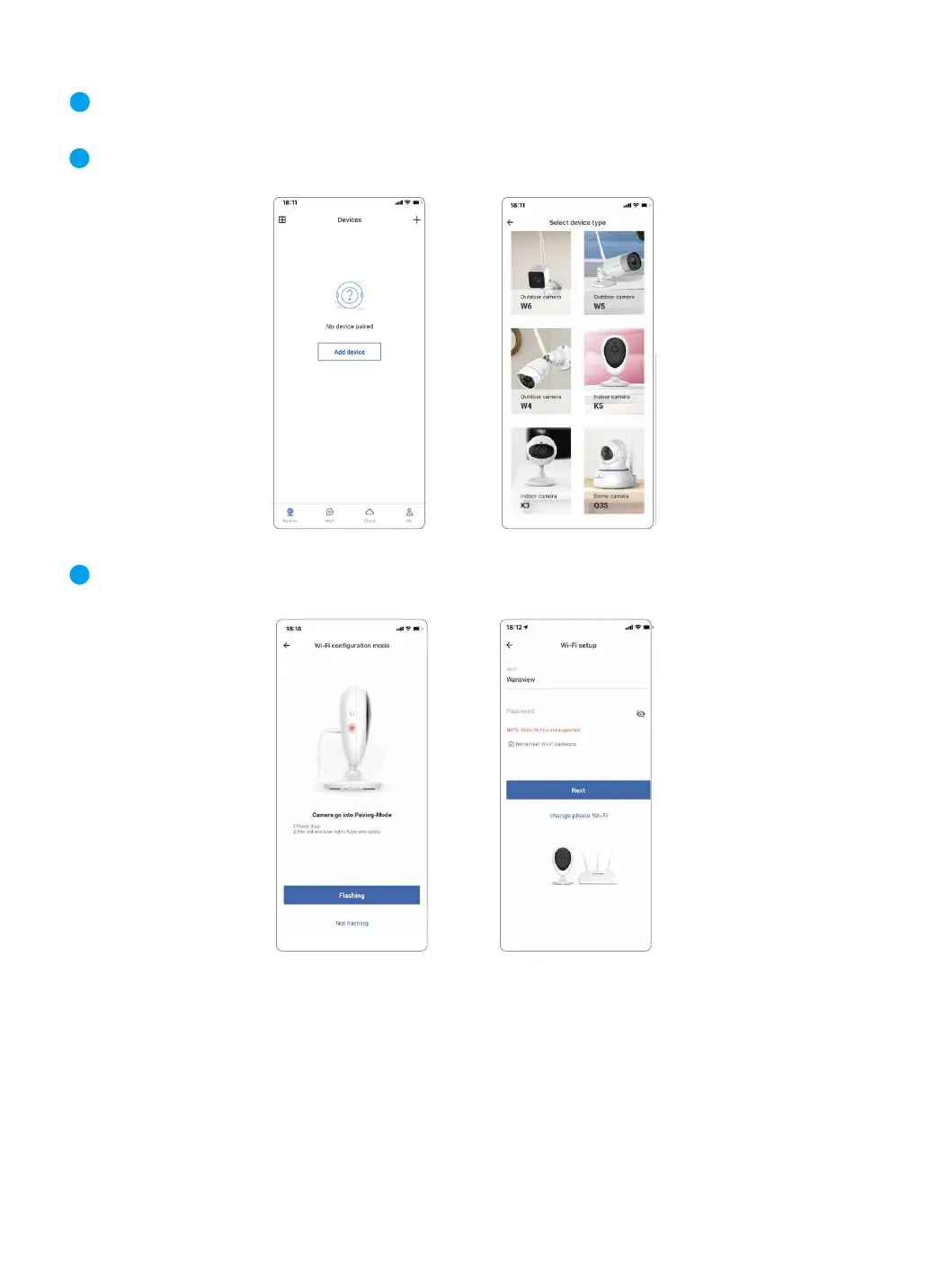 ③ Check if the camera's indicator light is flashing red and blue, if yes, tap【Flashing】.