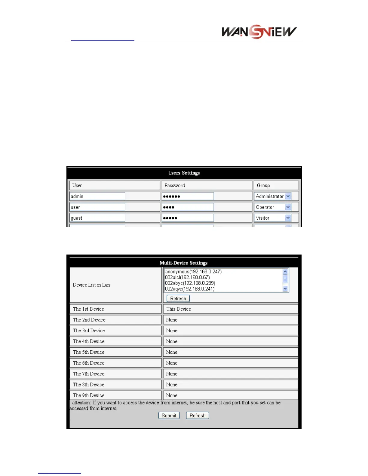 There are three levels of authority; they are Administrator/Operator/Visitor. Administrator