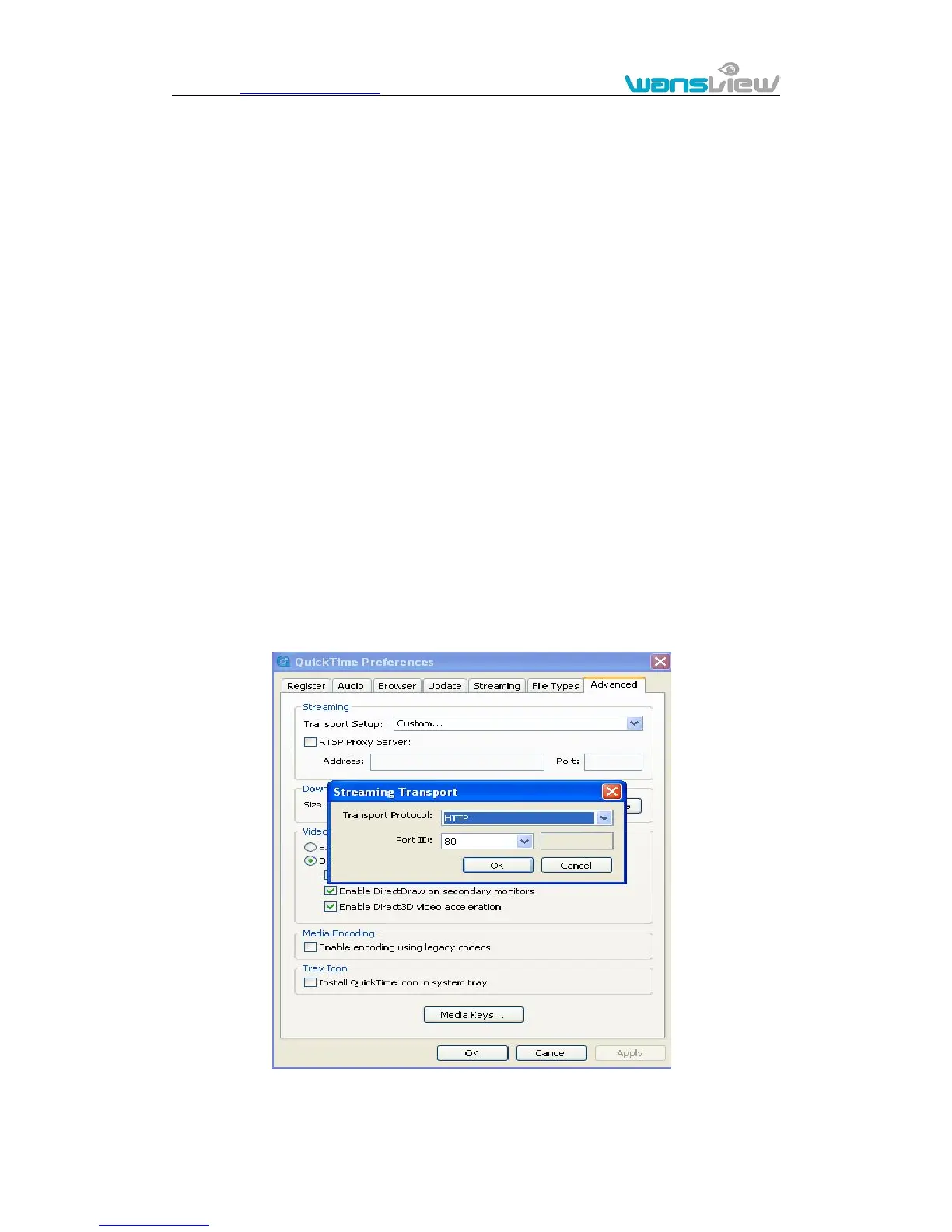 “Advanced”, select “custom.” in the Transport Setup. It pops up the Streaming Transport