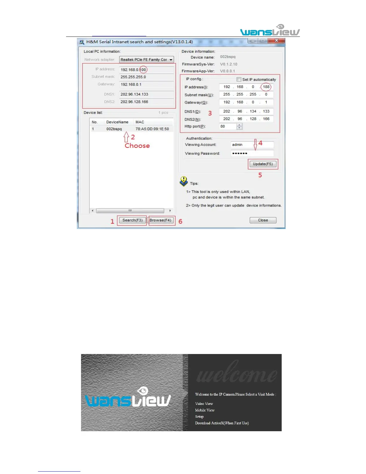 6) After updating successfully, click “Search (F3)”, choose the device again and