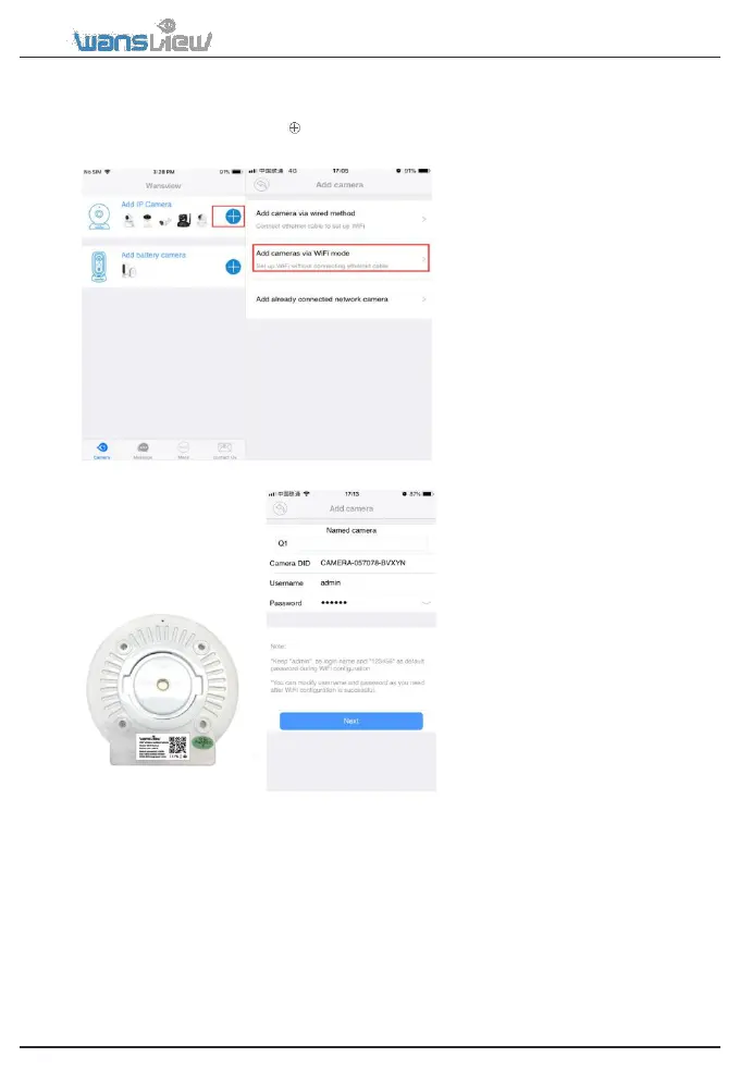 • Launch the Wansview app, Click to access Add Camera page and select “Add cameras via