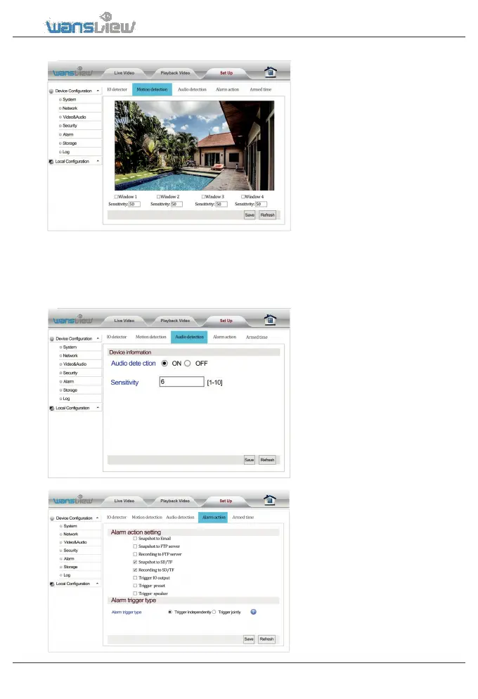in the web interface. Motion is detected by changes in the pixels of the images.