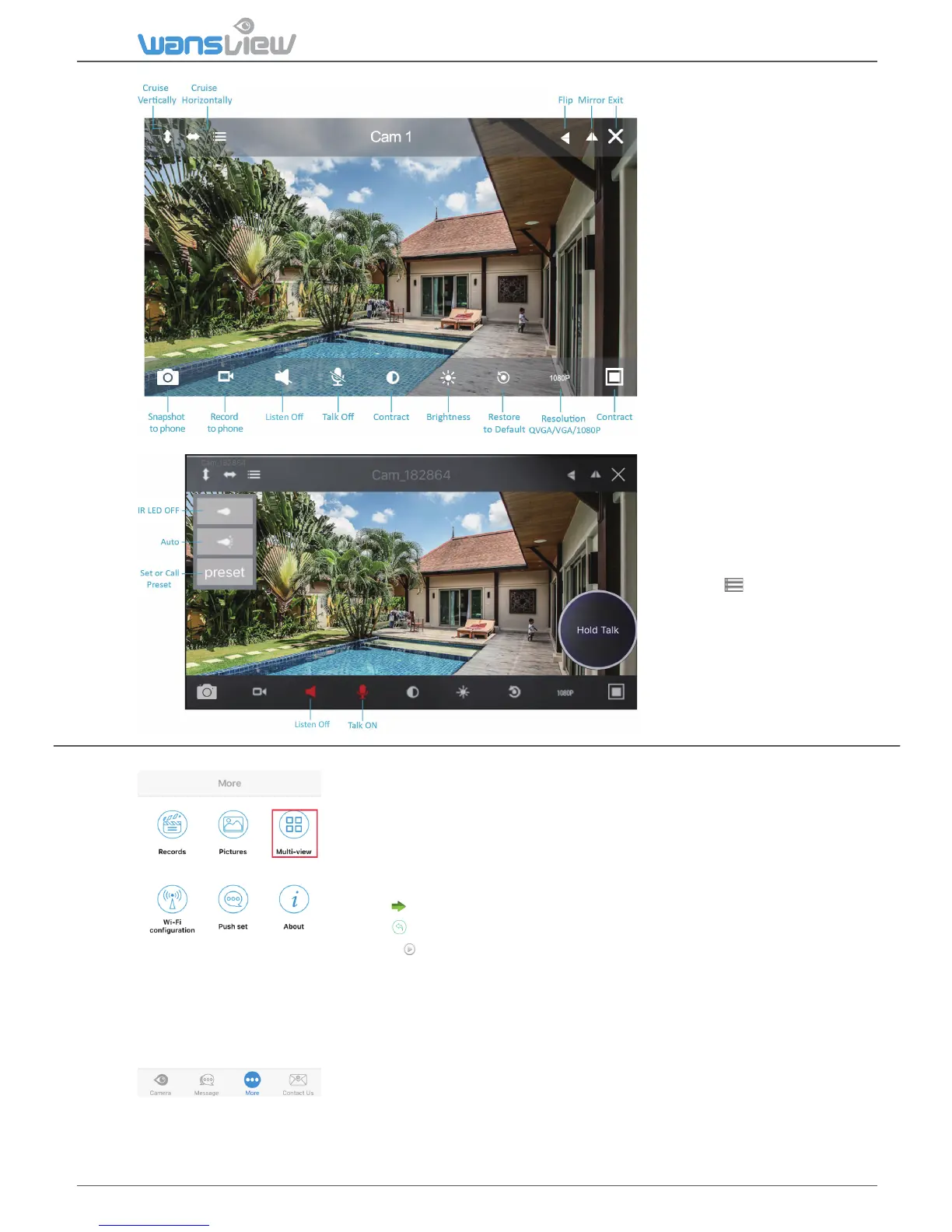 1.Tap “More” and select Mul-View. Up to 4 cameras can be