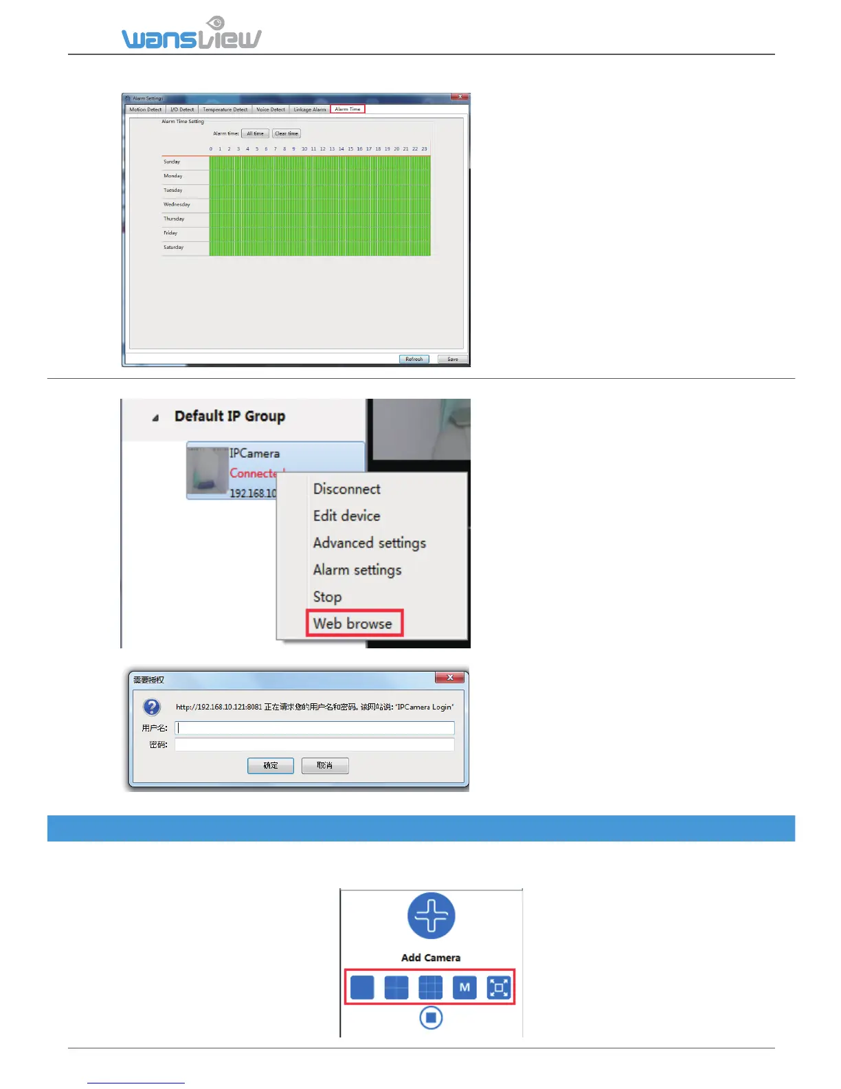 User can monitor mulple cameras at the same me, 4-screen, 9-screen, M(6, 8,16, 25, 36) and full