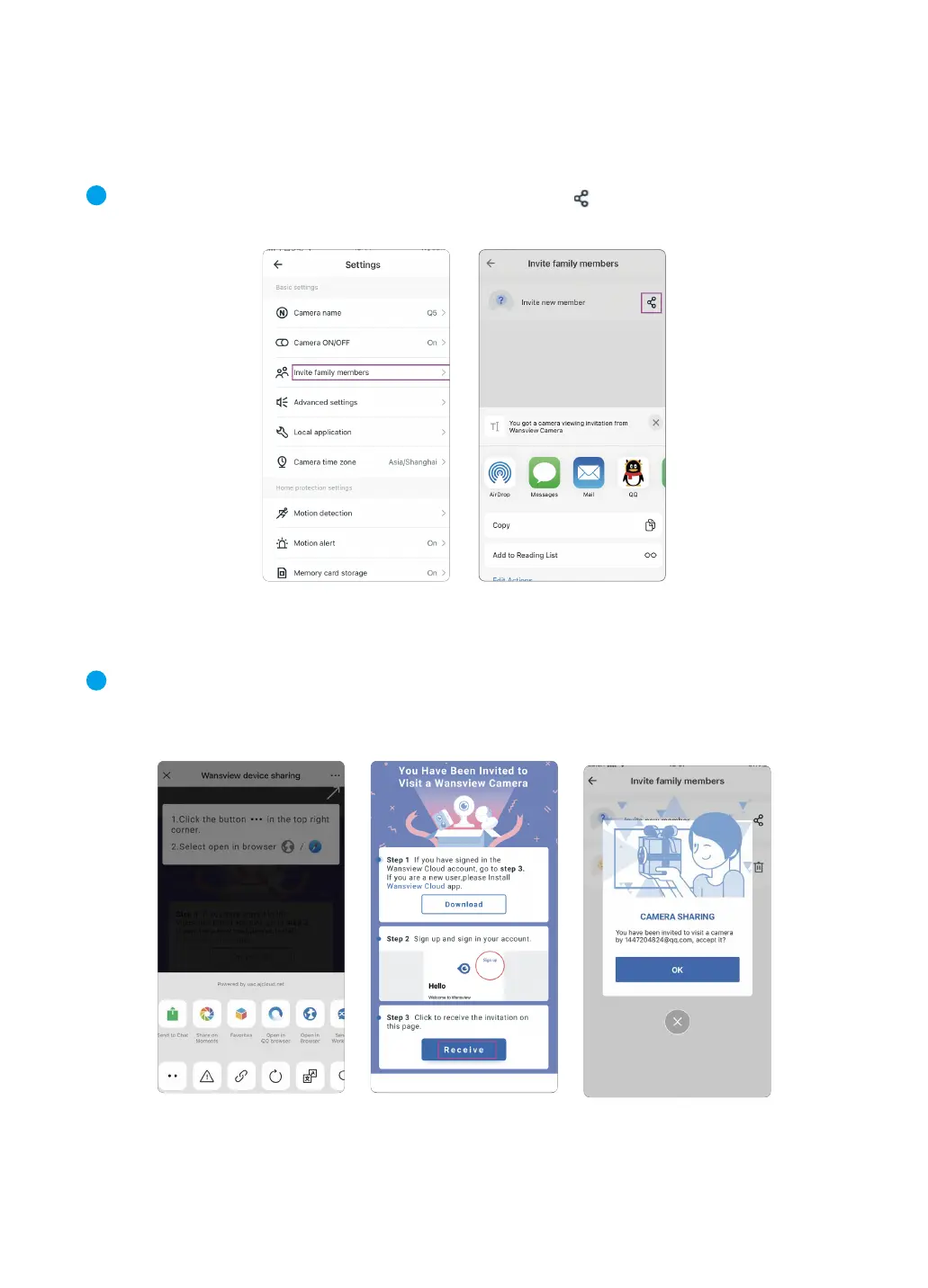 Before proceeding the sharing, please ask your family to download Wansview Cloud APP to his
