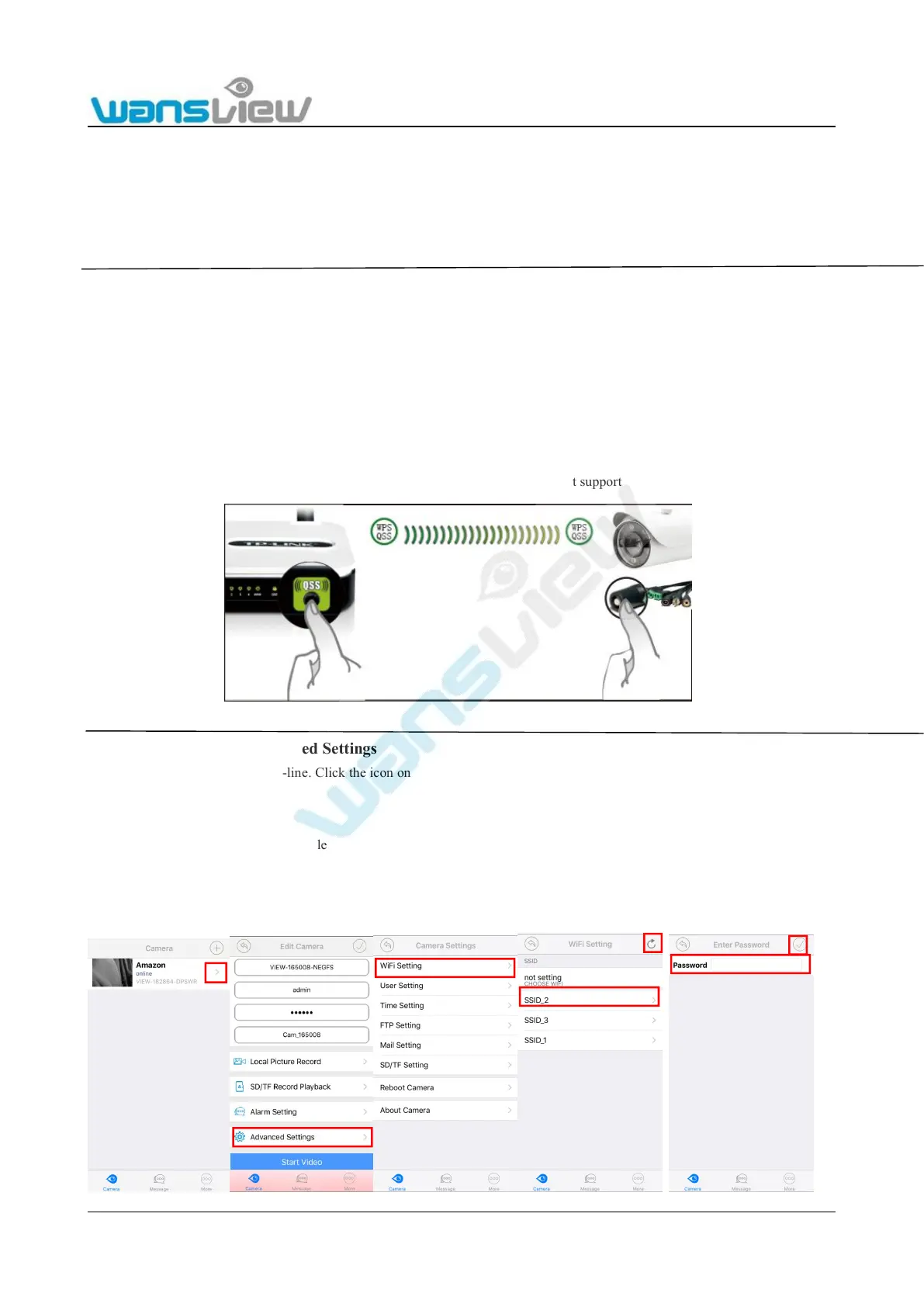 1) Please confirm whether the wireless router that the camera will be connected to supports WPS/QSS function (by reviewing the