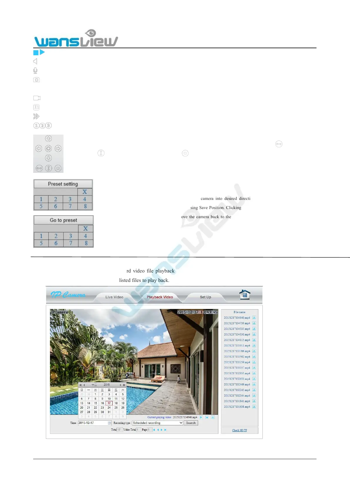 video files of the selected day. Click the listed files to play back. The files can be downloaded by clicking the download button.