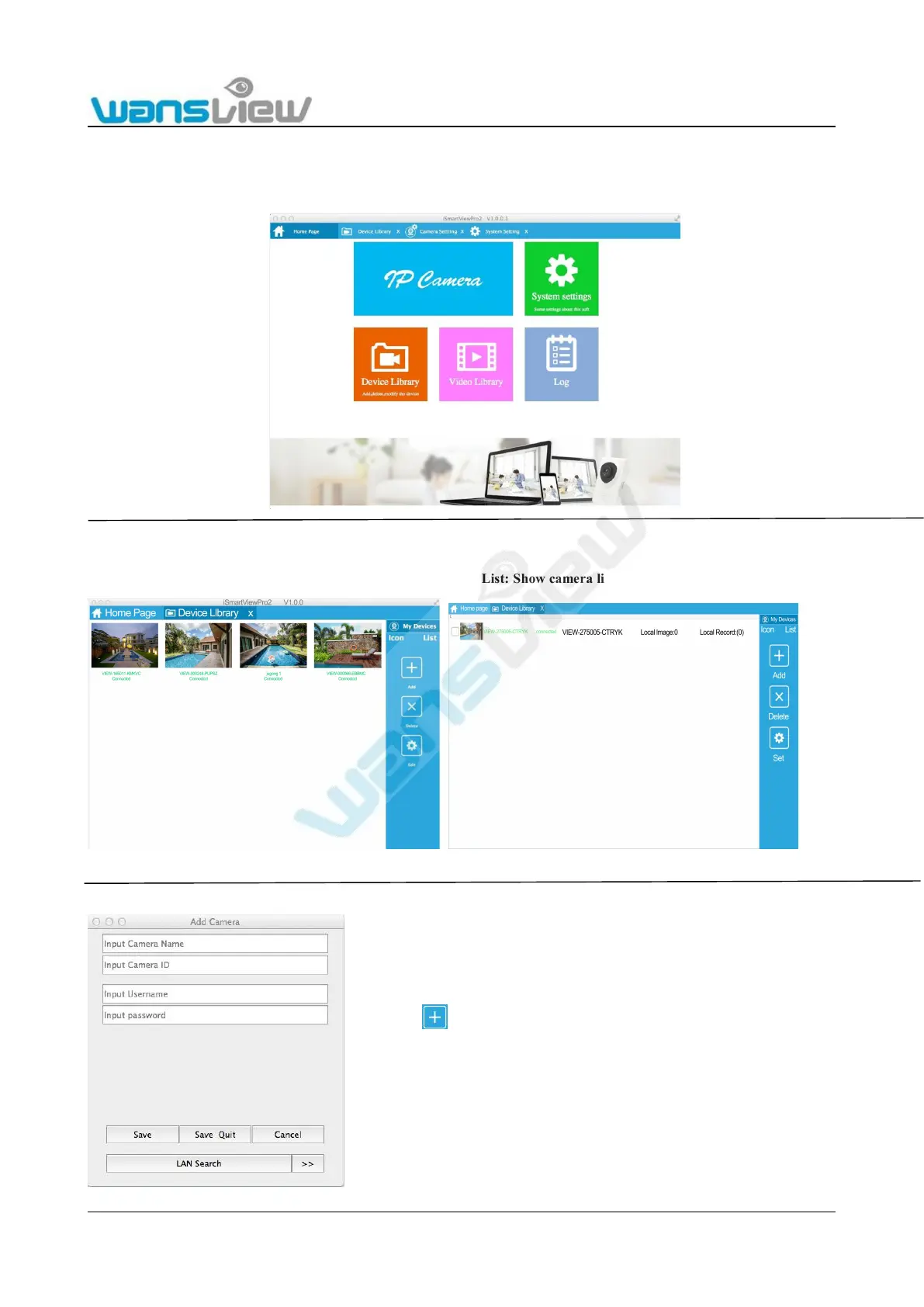 Icon: Show camera list by Icon List: Show camera list by List.