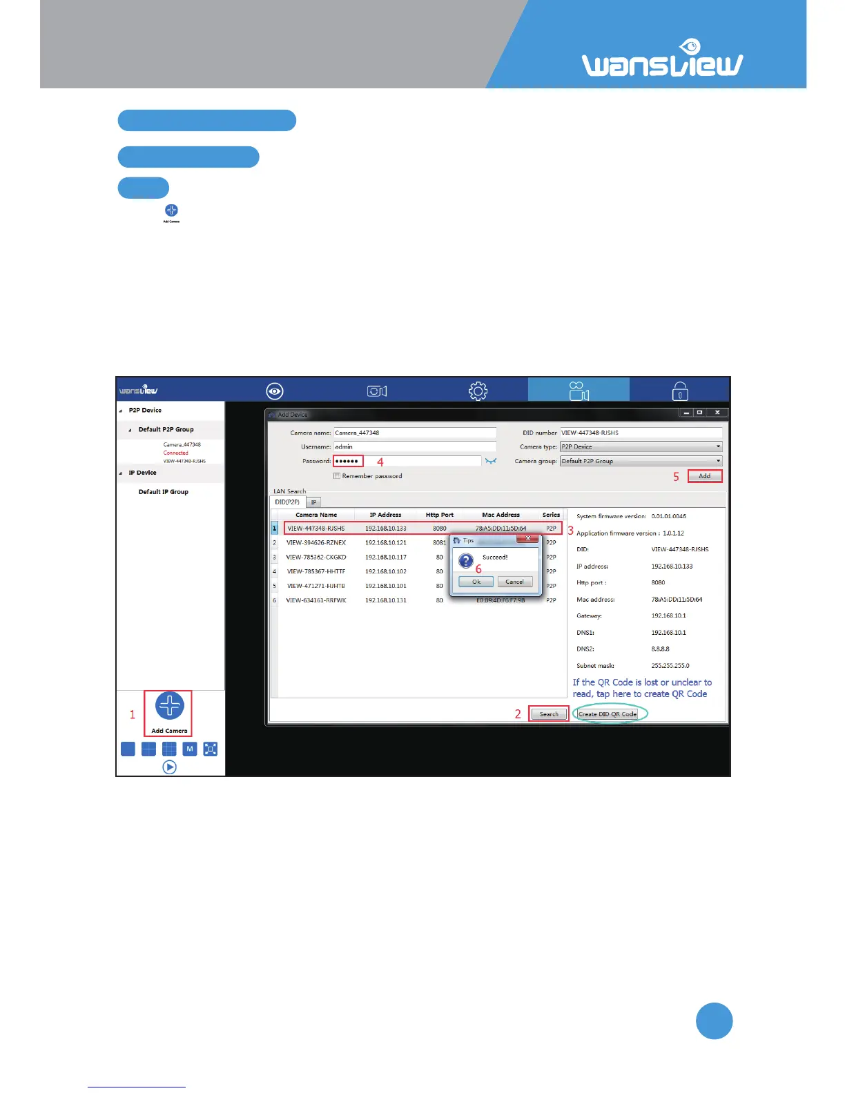 2) Search the camera in Lan, DID number will be searched if use DID(P2P) to search, while