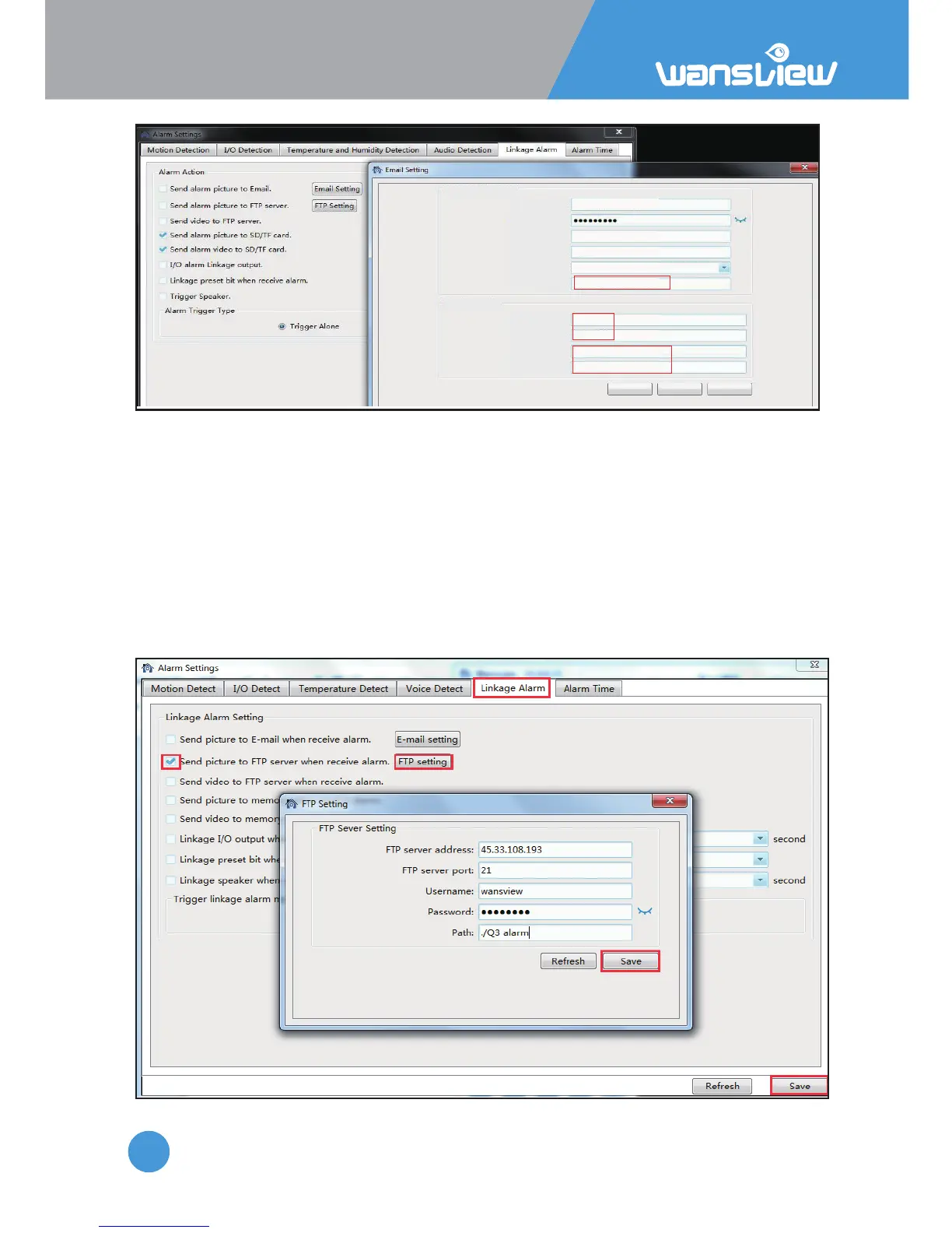 Note: If you want to save the alarm picture and video to FTP, you must build an FTP sever,