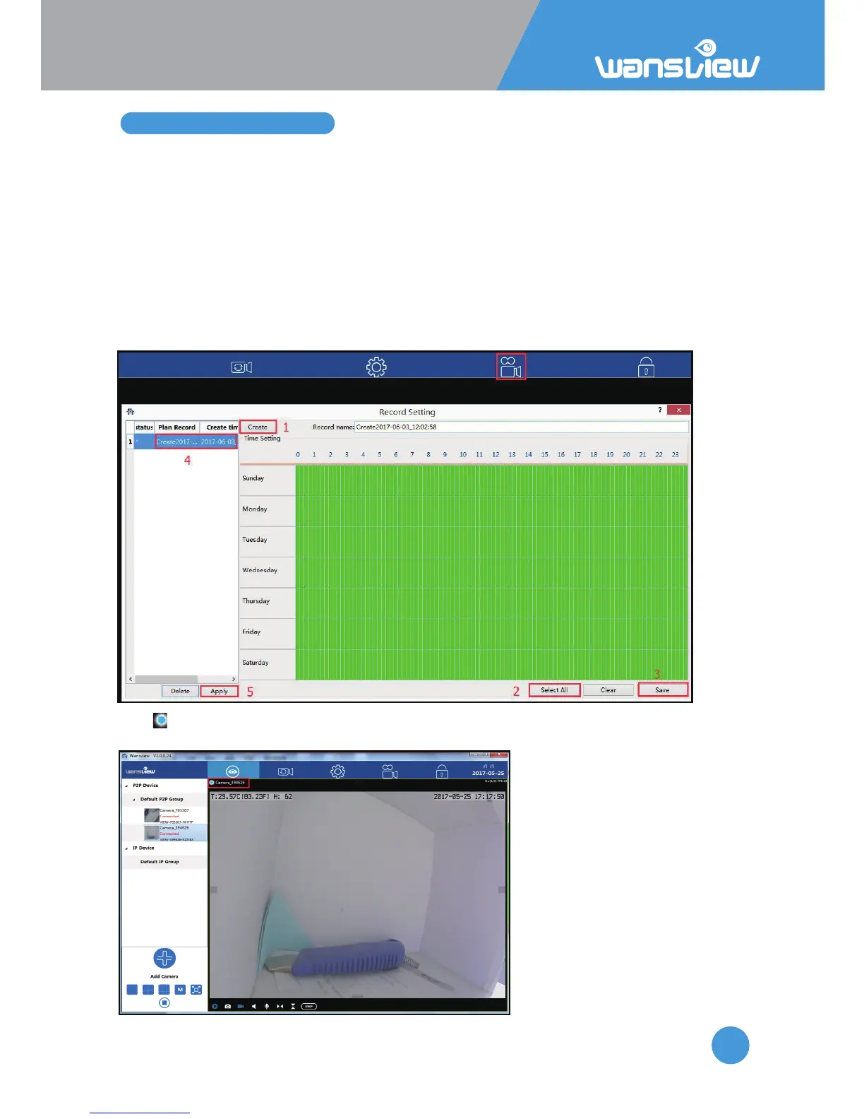 5: Apply: Click “Apply”, a * will appear in front of the Record plan, it means the scheduled