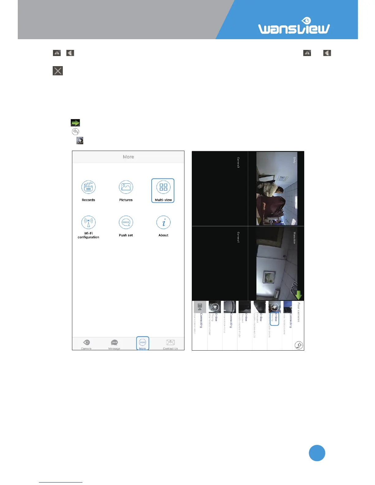1: Tap “More” and select “Mul-View” Click on cameras on the list to add the view on the