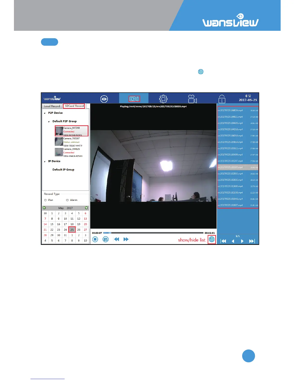 1) Choose SD/TF record and selected the camera you want to check.