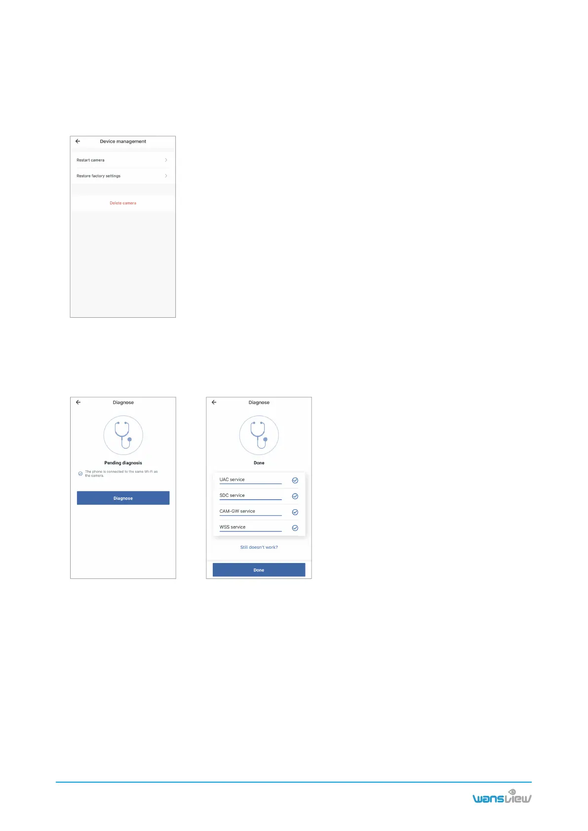 diagnostics system running to check problem. User could provide the diagnostic report to Wansview Support