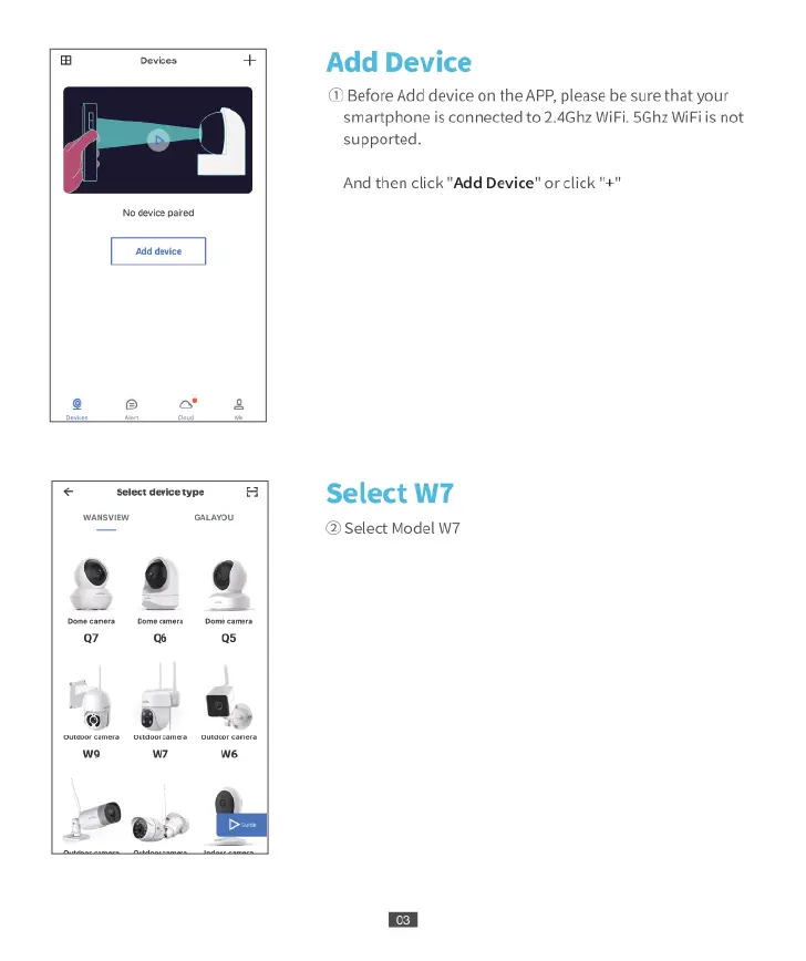 Wansview W7 - Add Devices; Select Model W7