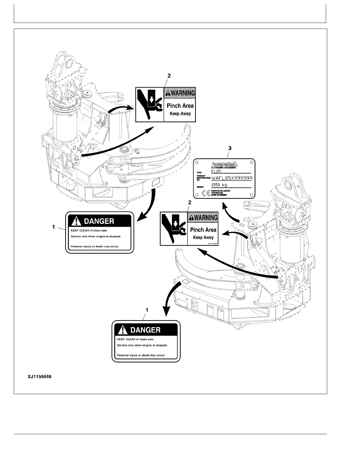 waratah FL85 - Safety: Signs and Labels; Head Label Positions: Series I (-000089)
