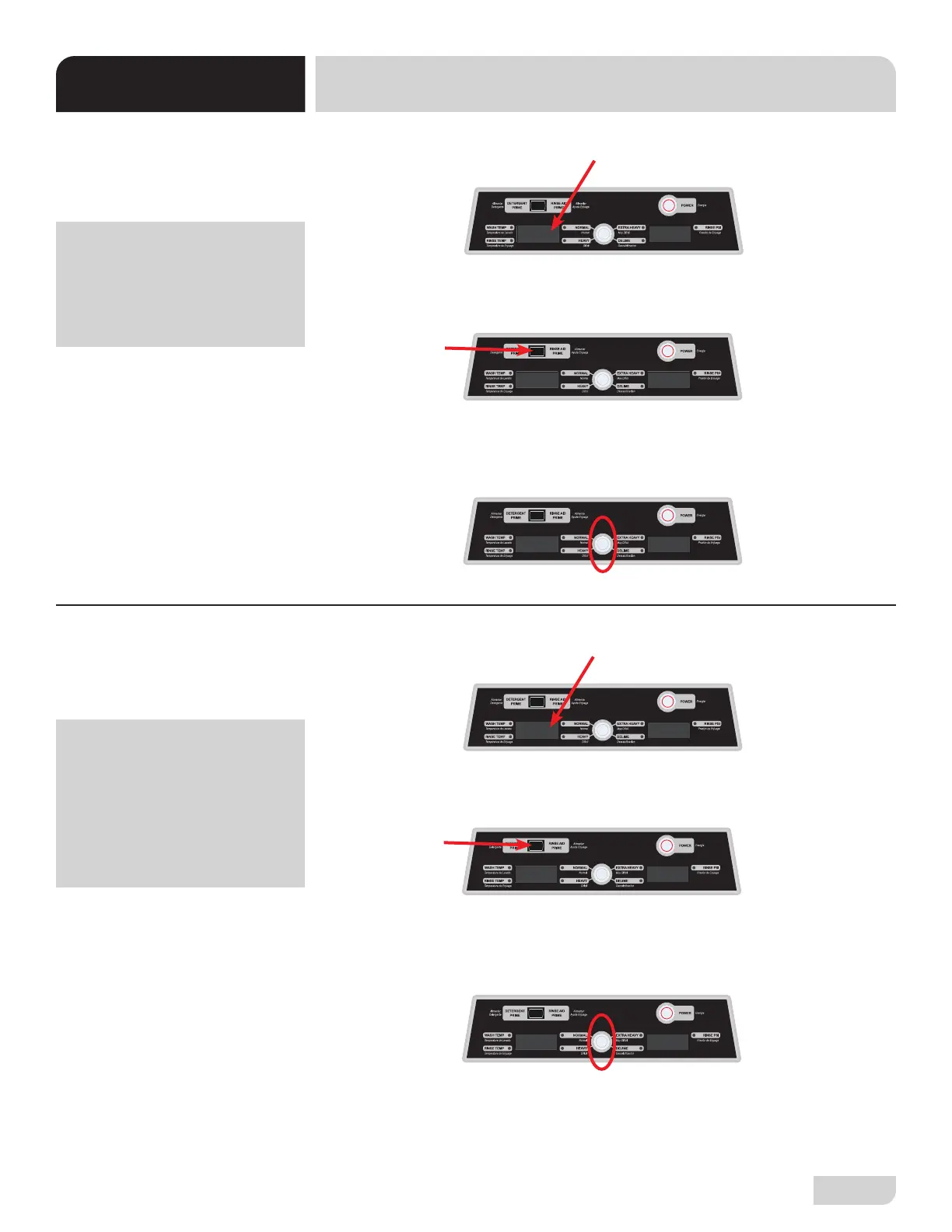 1. Once setting changes to rinse-aid priming time, current setting will ash on and