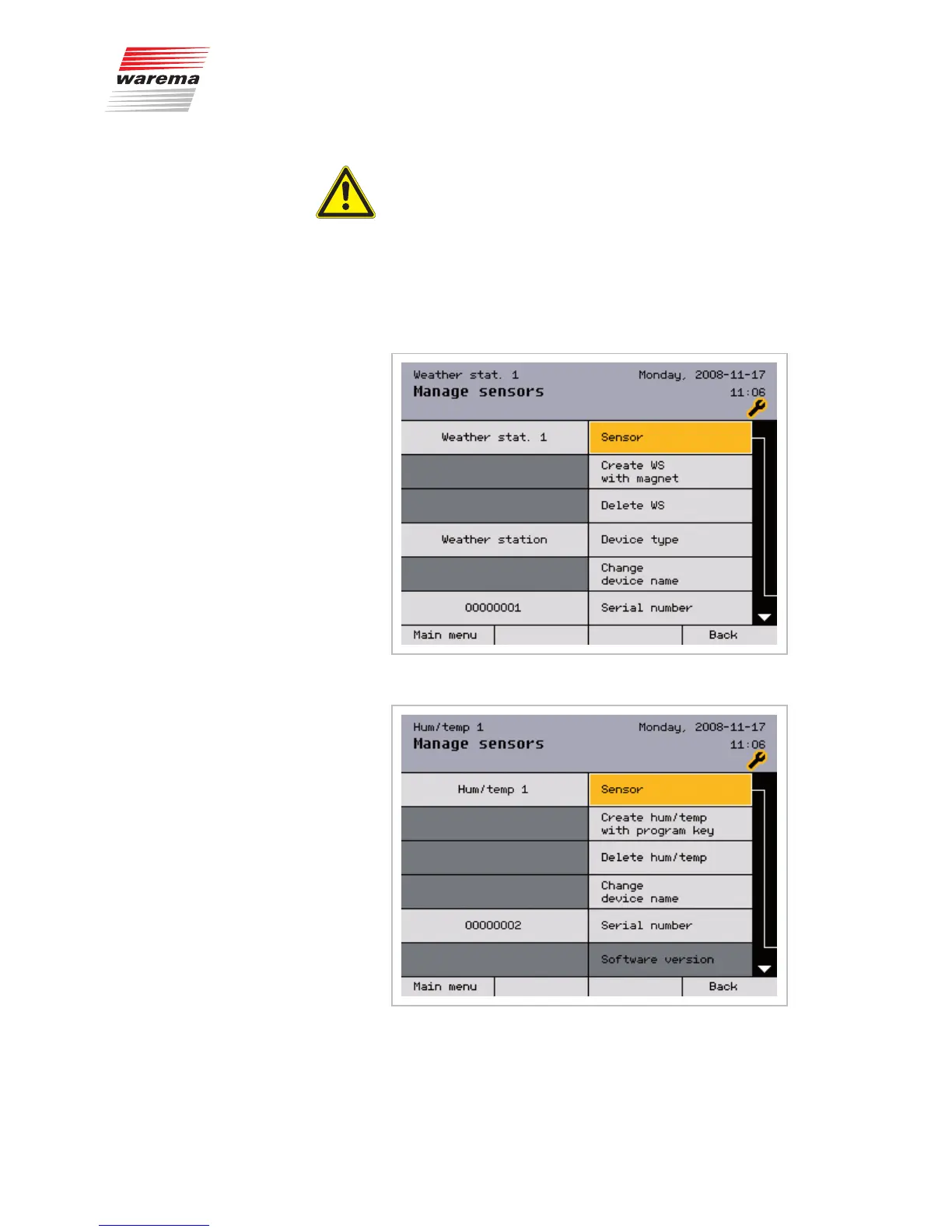 Select a sensor by turning the function wheel; switch to the next menu by