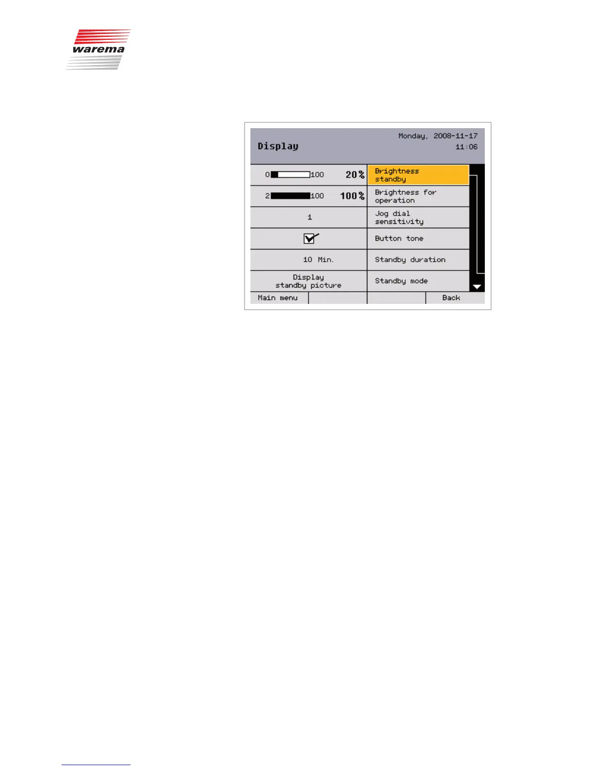 Select [Brightness standby] by pressing the function wheel; turning it chang-