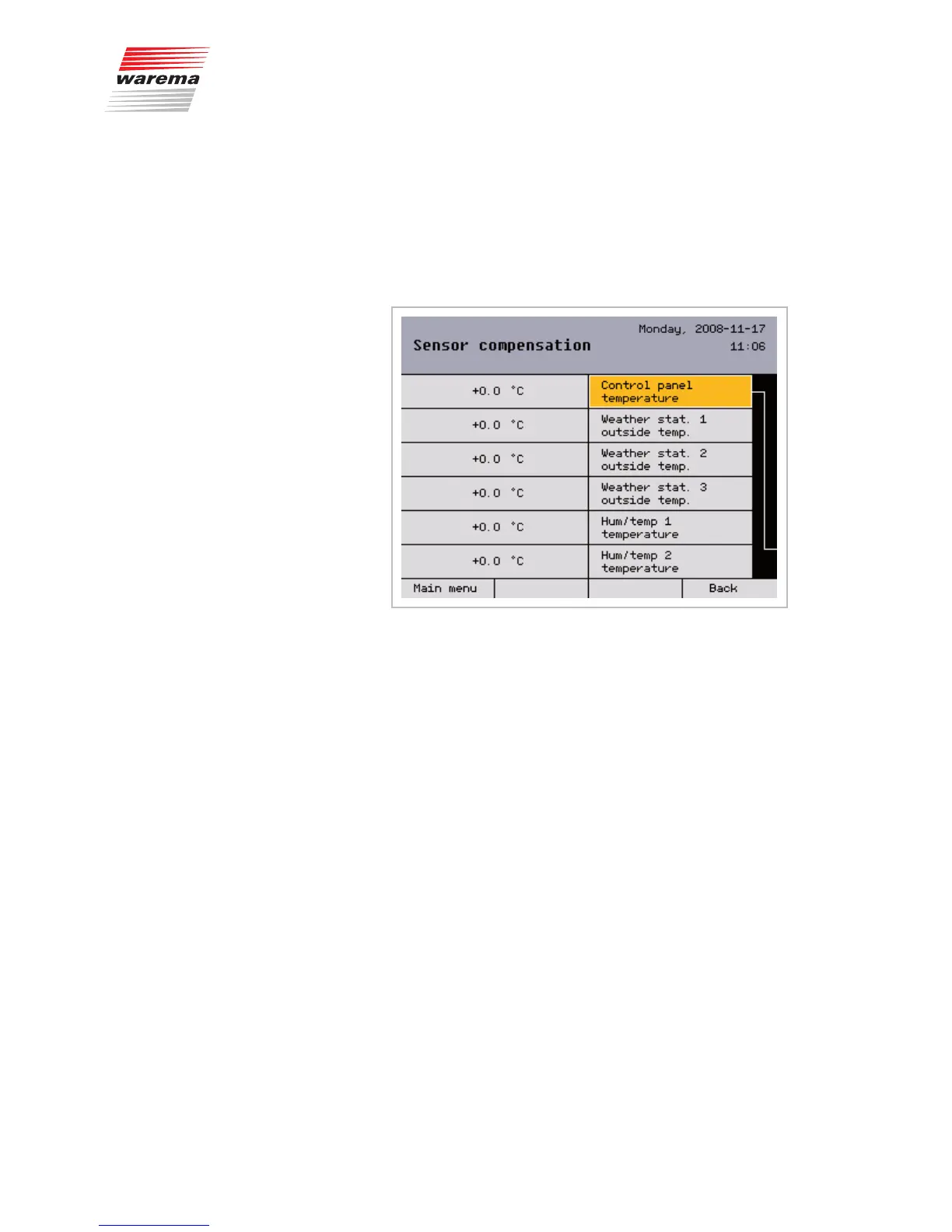 WAREMA climatronic is corrected up or down. The setting range is –10...+10