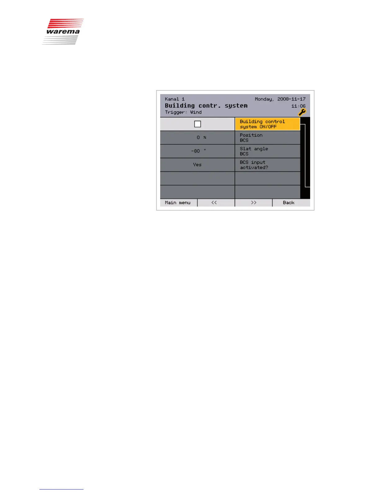 This menu is used to set how a channel of the WAREMA climatronic re-
