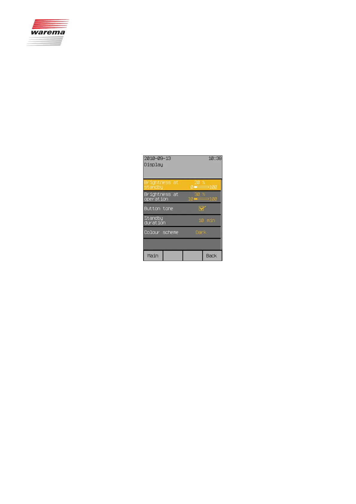 pressing [Back] once more leads you to the [Settings] menu.