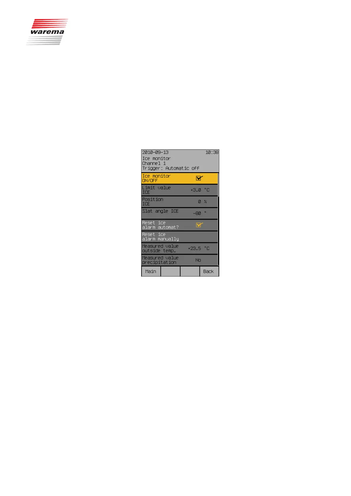 In this menu line, you specify whether the ice monitor is to reset an ice alarm