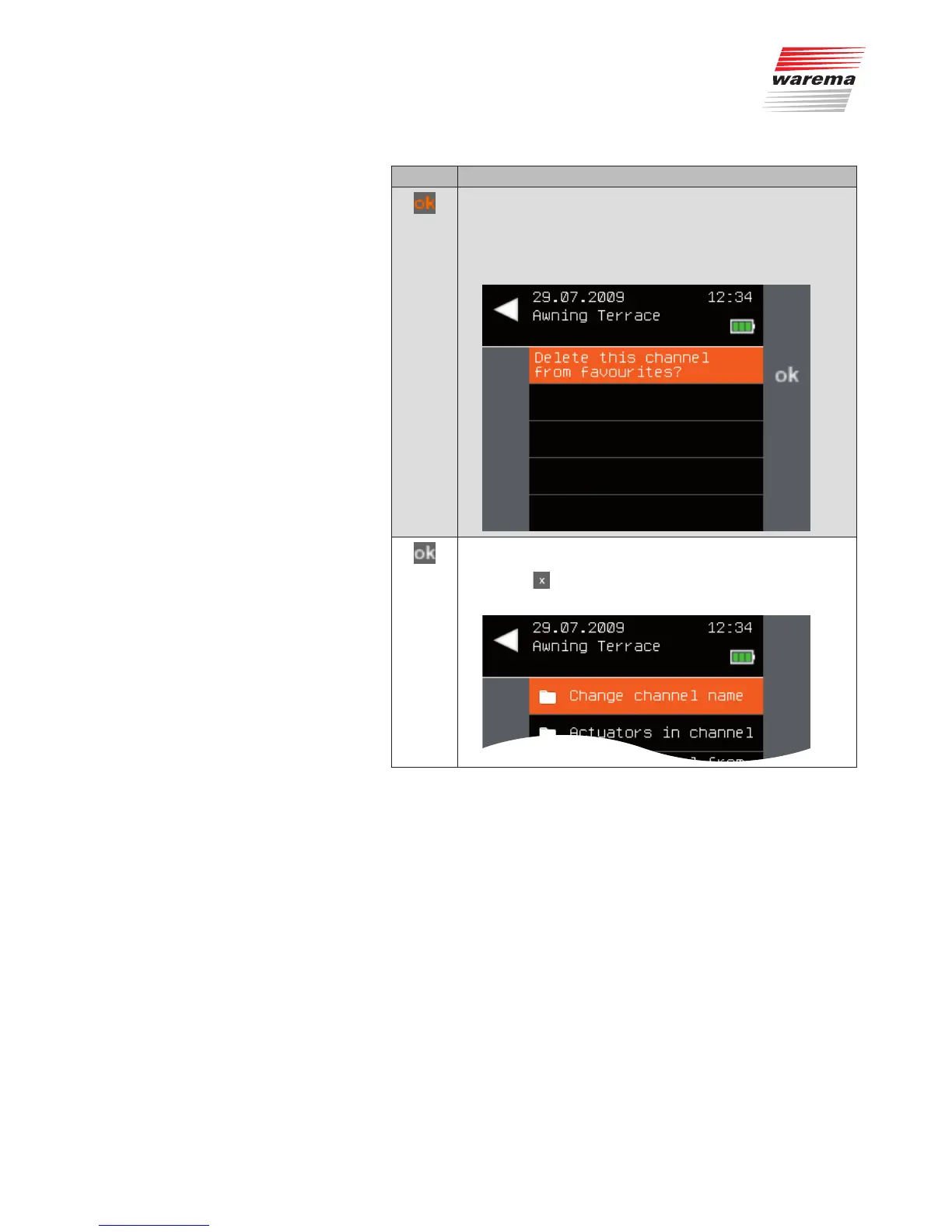 Confirm with ok in order to delete the favourite. (If you do not