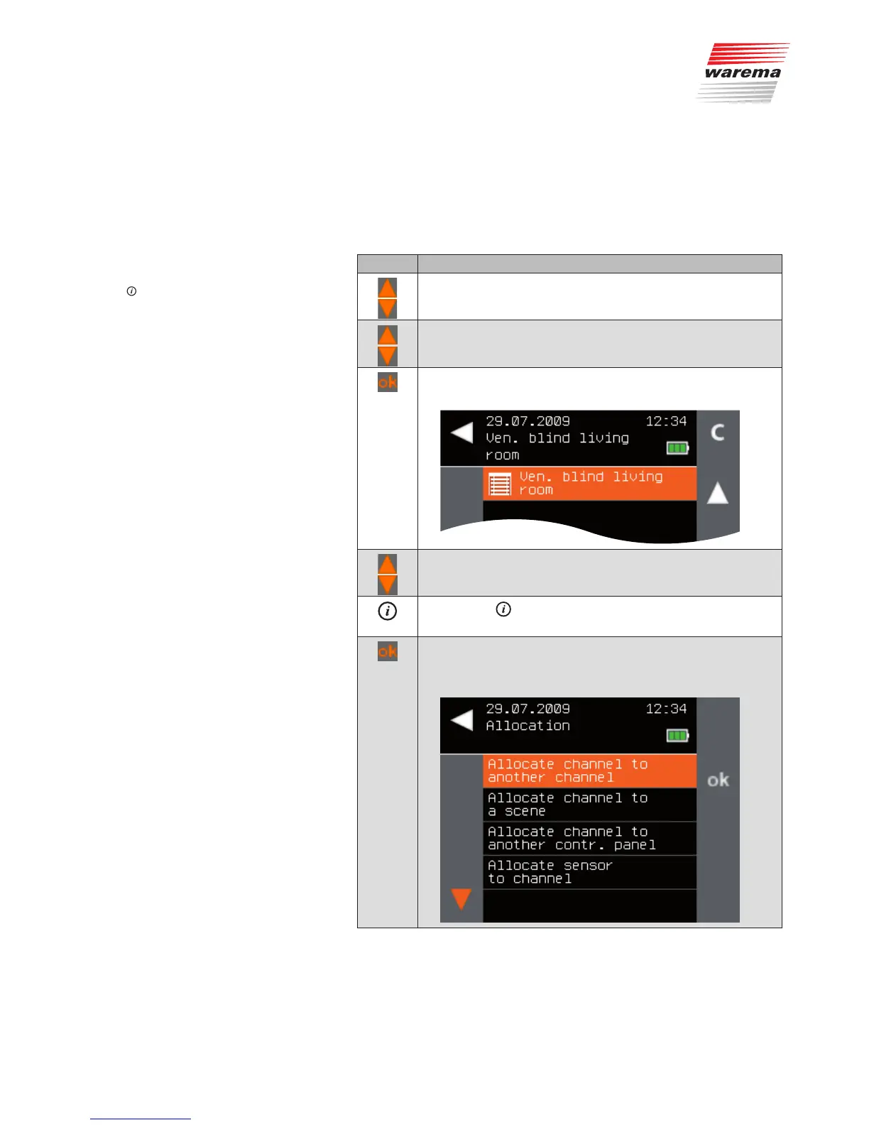 Using the selection cursor, select the channel to which you