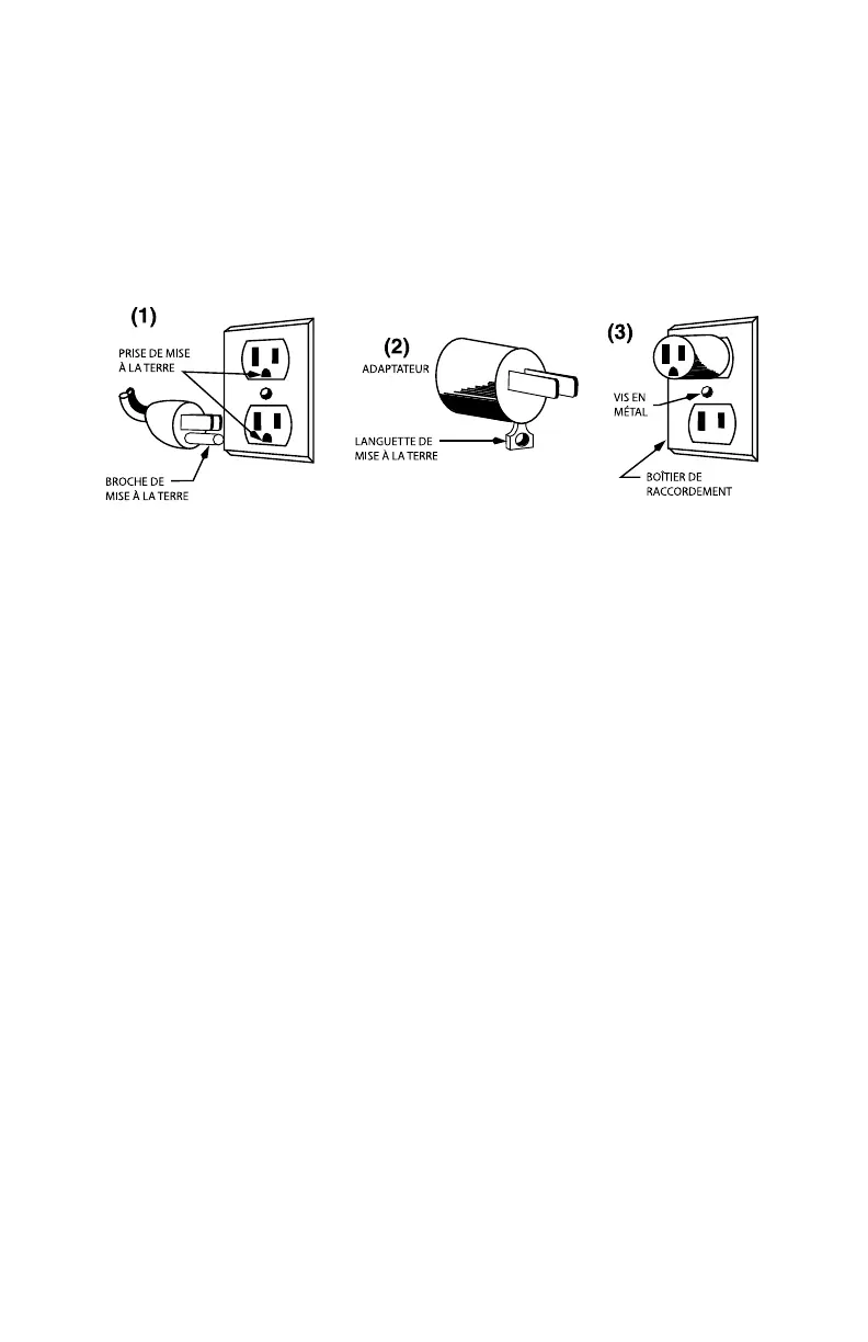 • Cordon: 1.85 m (6 pieds), avec prise de terre et manchon