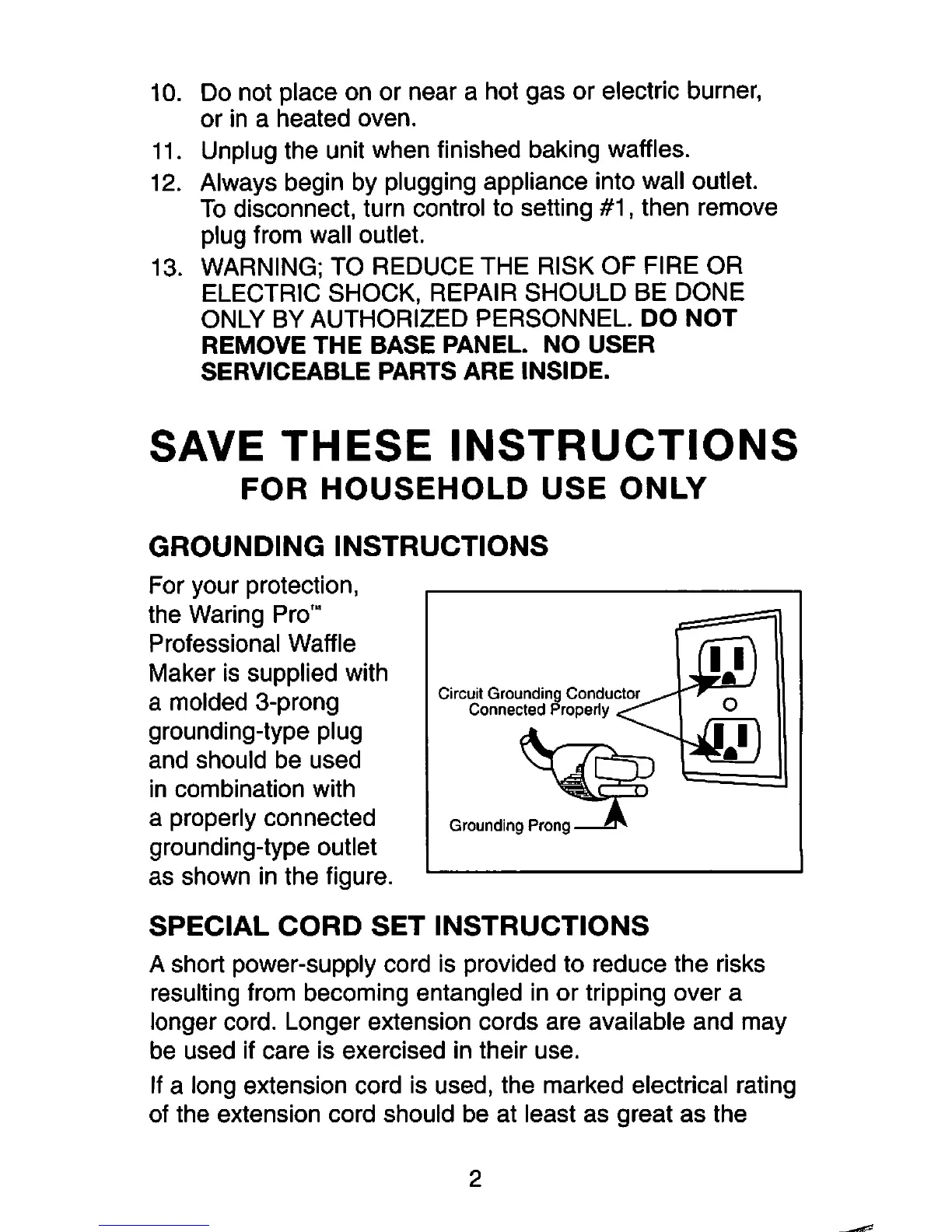 Waring WMK300 - Grounding Instructions; Special Cord Set Instructions