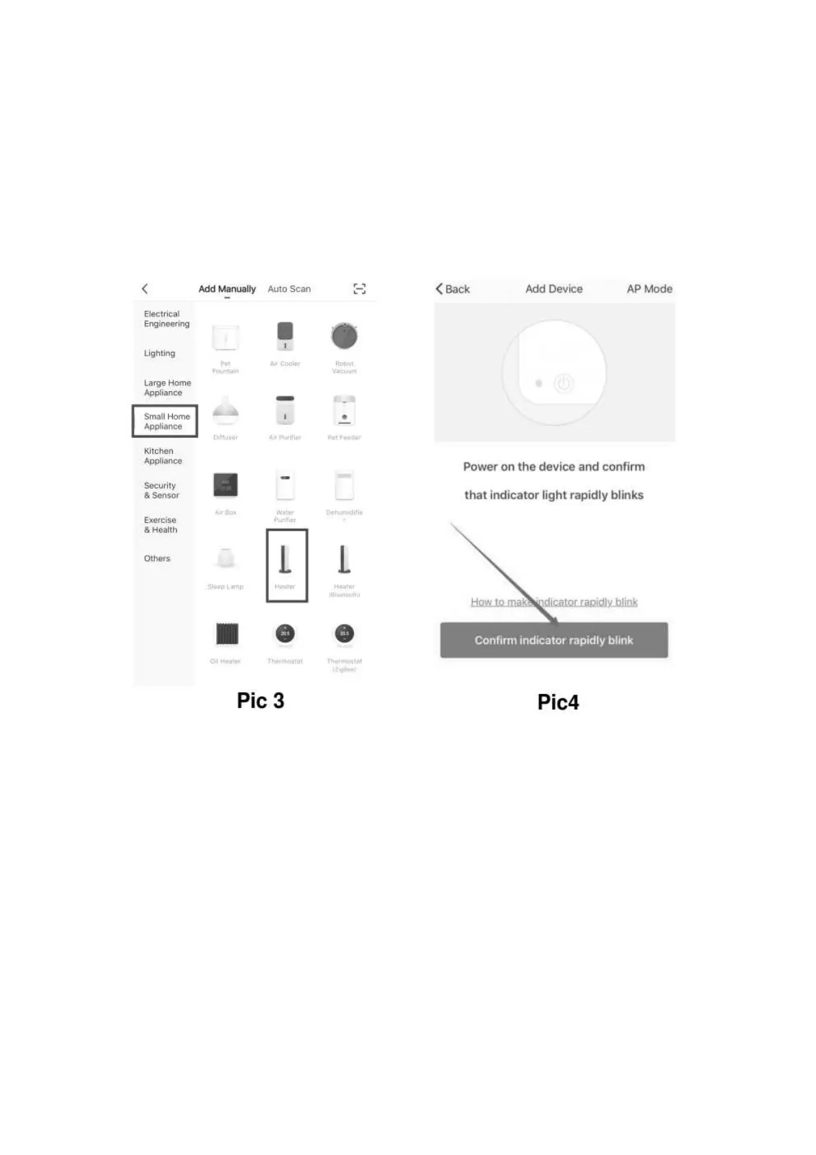 C) Press the “confirm indicator rapidly blinks” when the indicating light on device rapidly