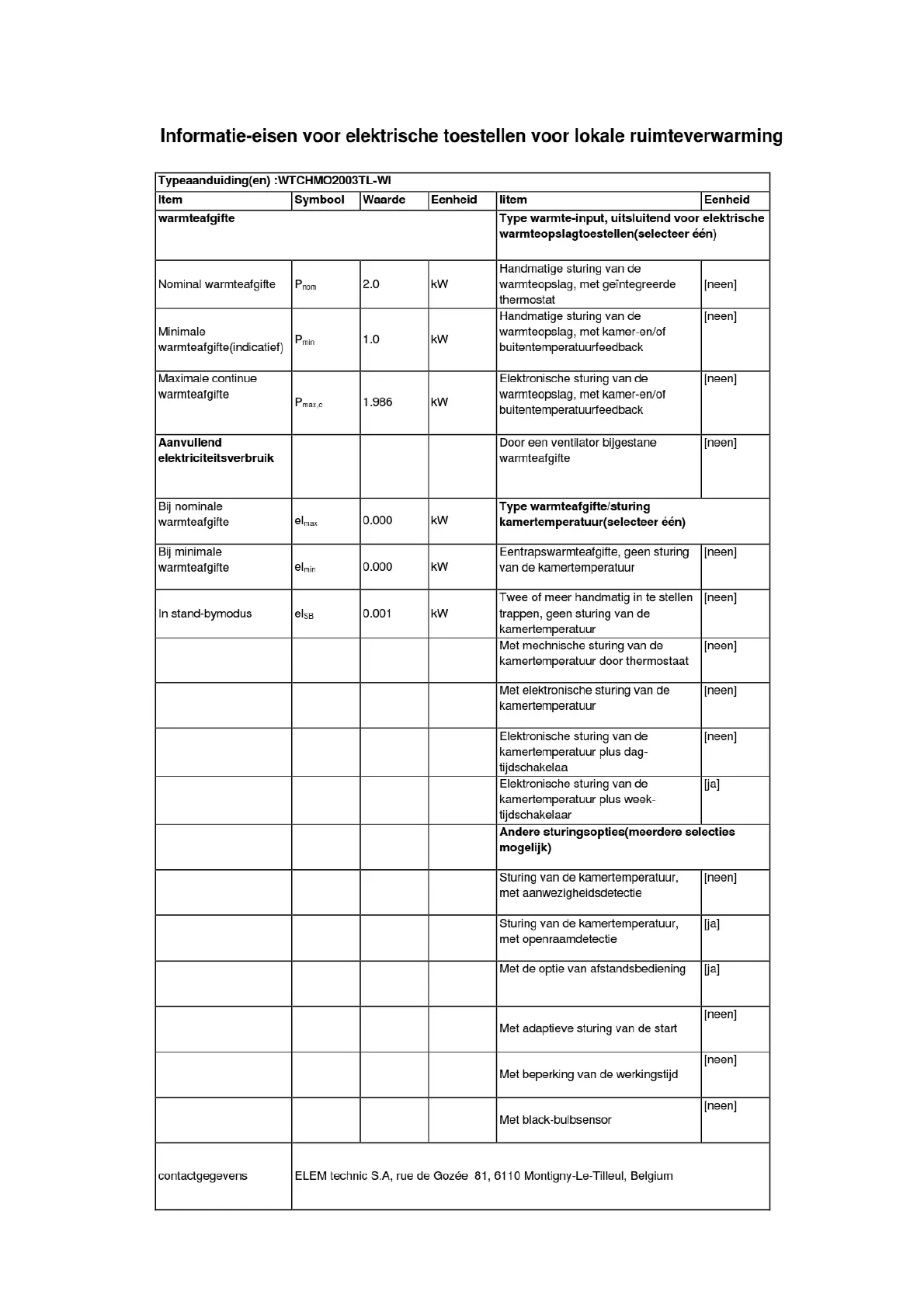 Warm Tech WTCHMO2003TL-WI - DUTCH COMPLIANCE REQUIREMENTS