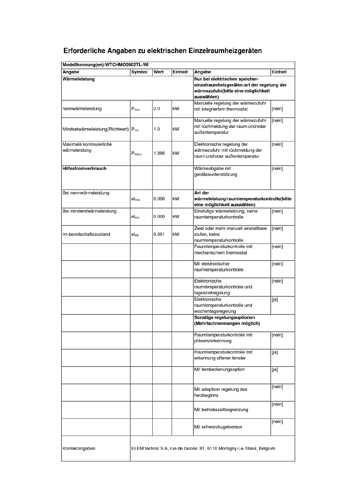 Warm Tech WTCHMO2003TL-WI - GERMAN COMPLIANCE REQUIREMENTS
