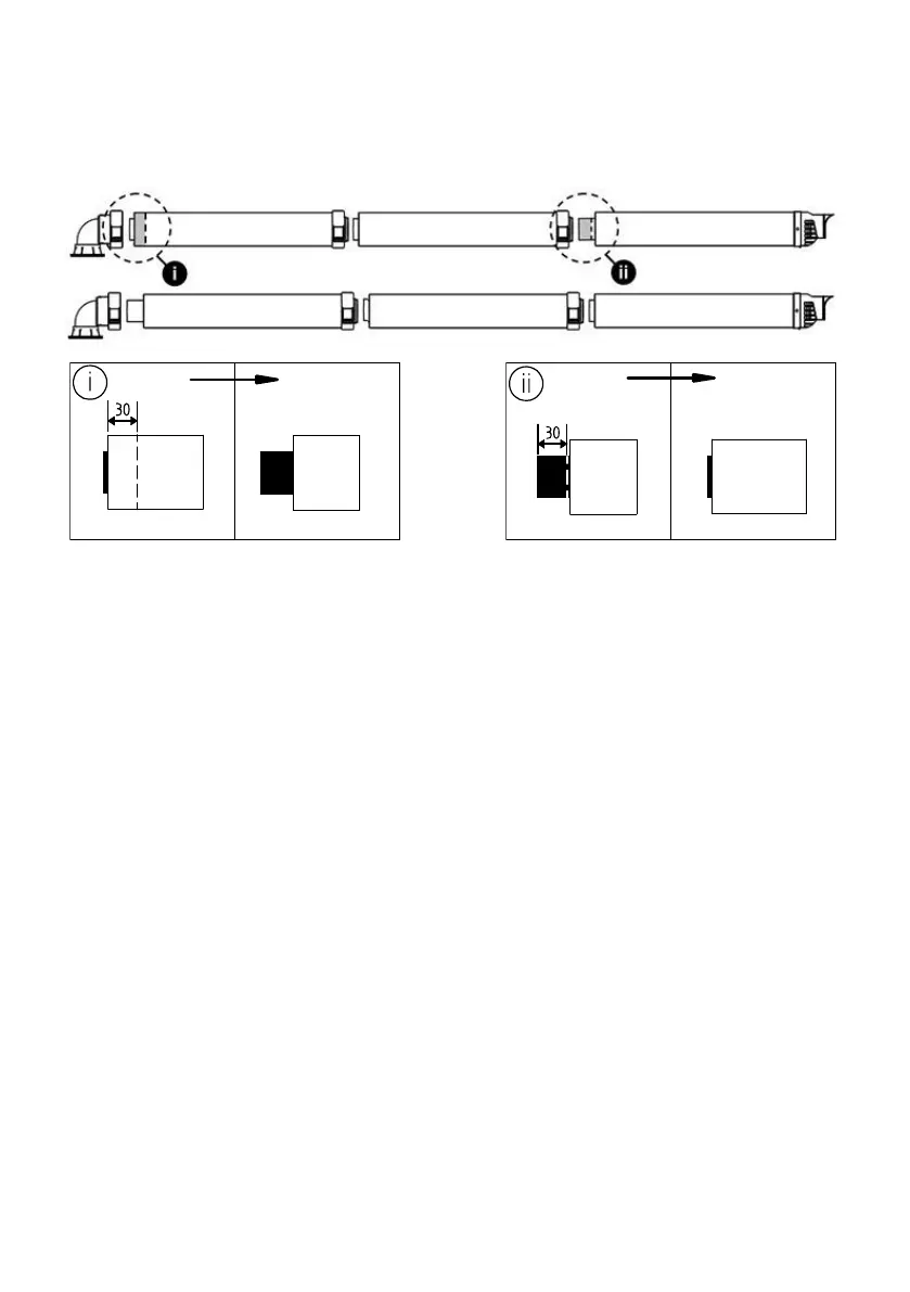 i. Cut 30 mm from the outer pipe of the 1st extension only.