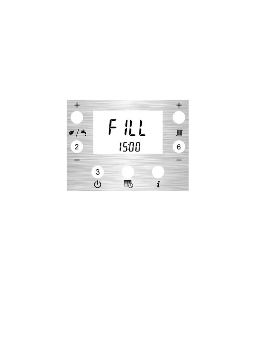 The Filling mode is activated by simultaneously pressing the DHW- (2) and CH- button (6) for 10