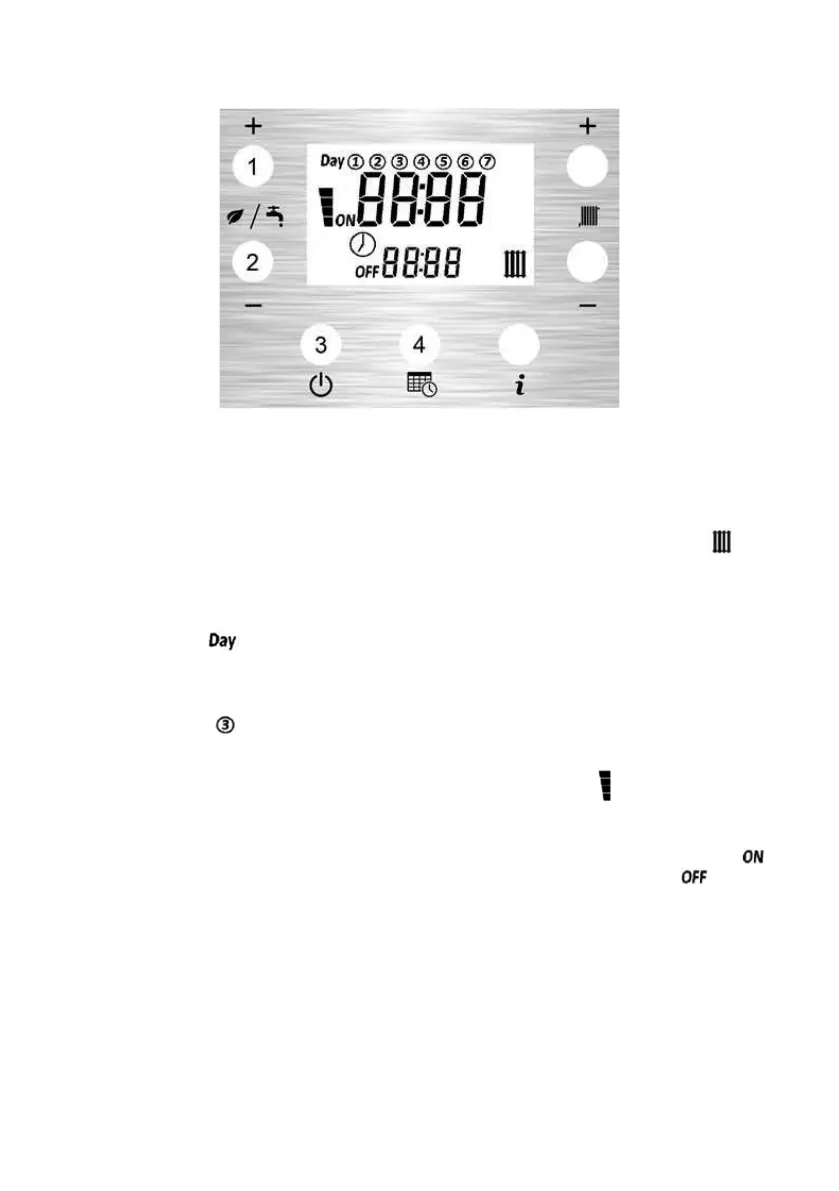 3. Press the DHW+ button (1) to select CH Time Programming, the radiator icon will